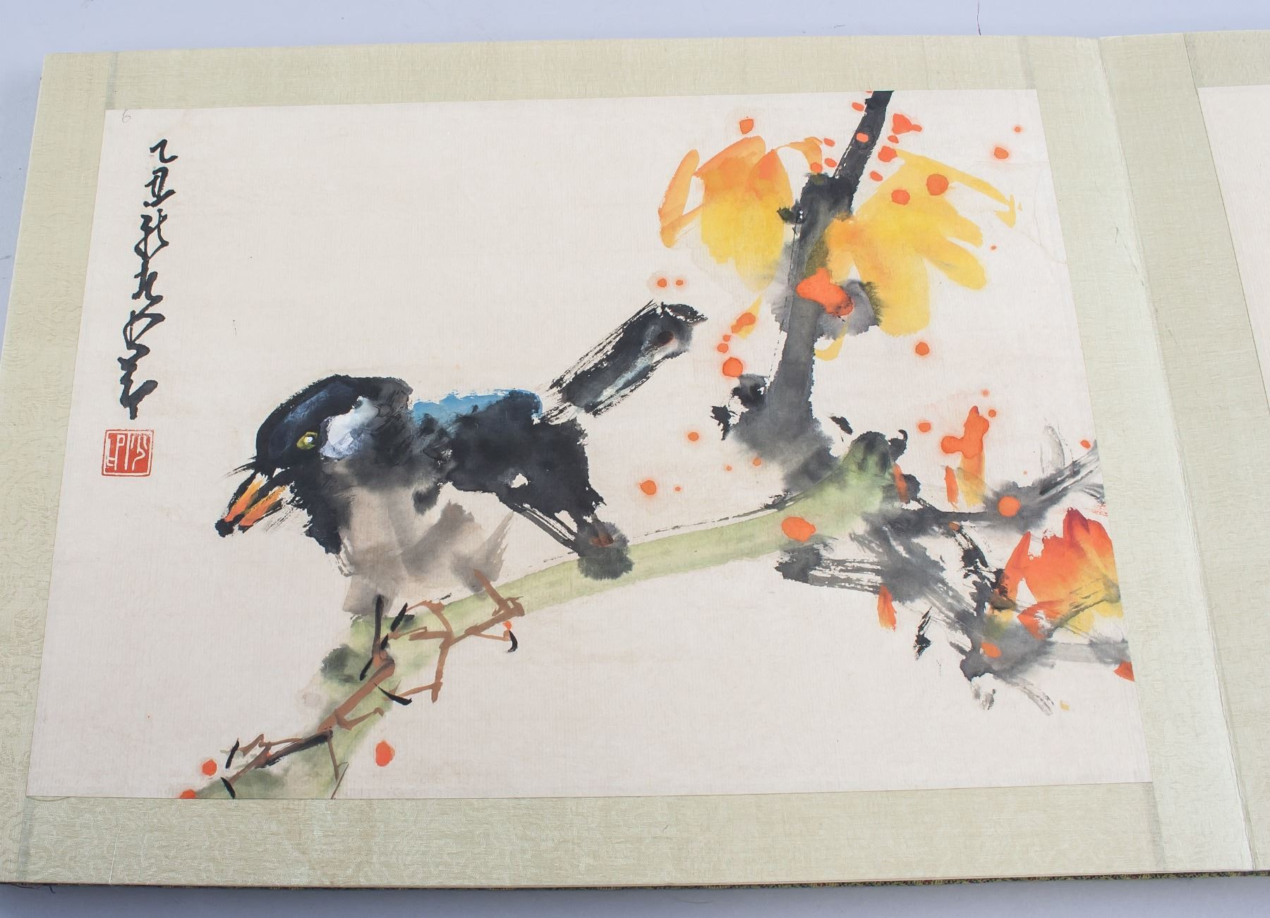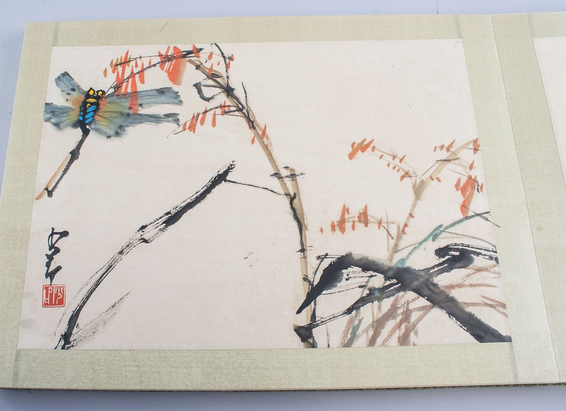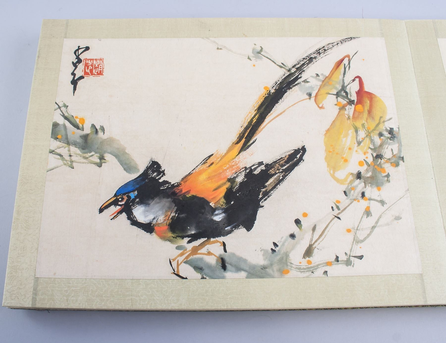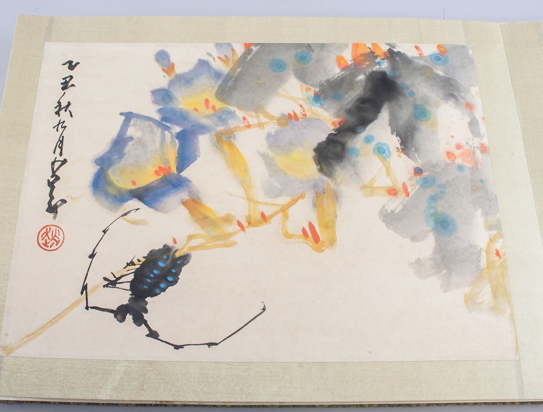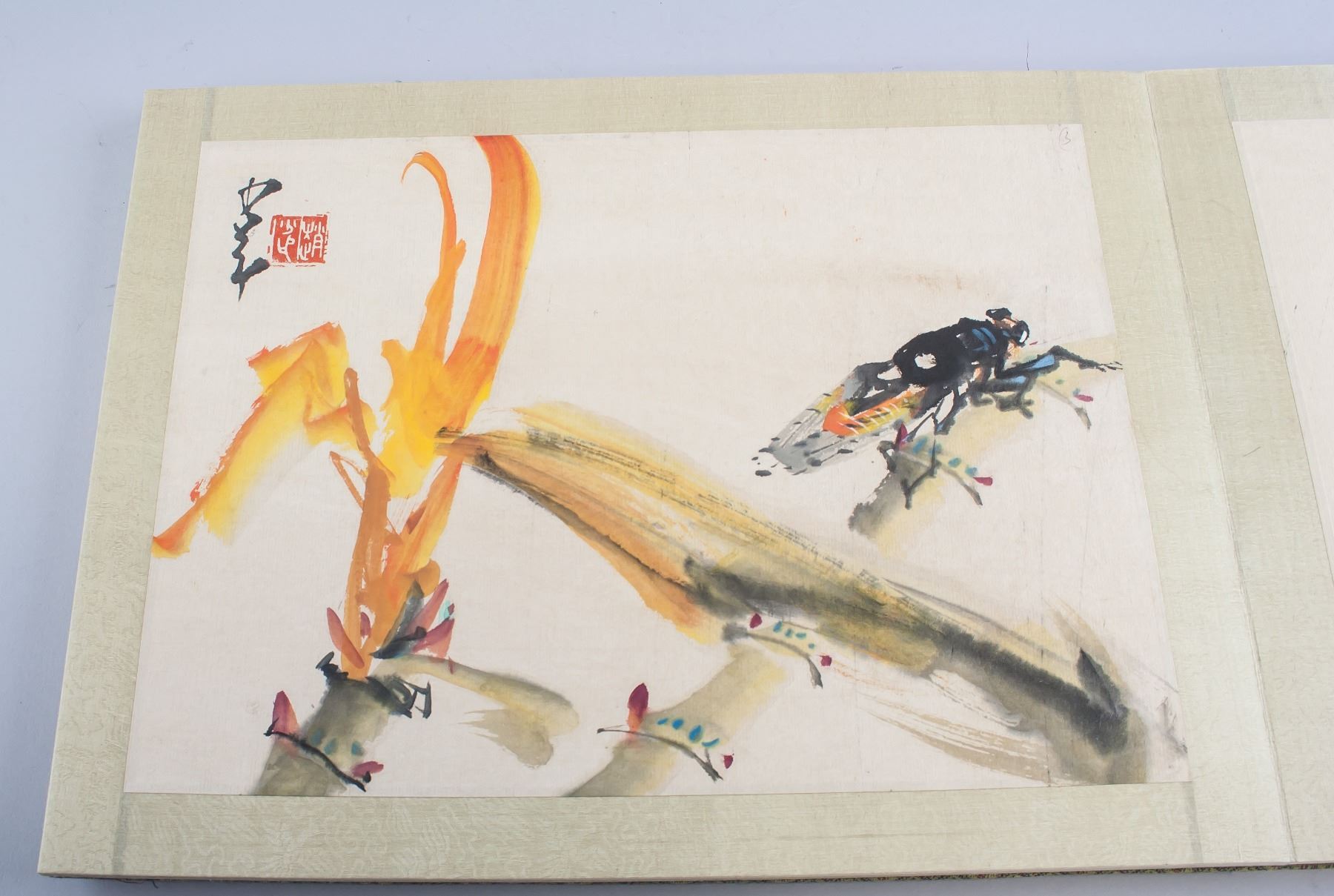 10-page of birds and insects; Chinese ink and watercolour on paper booklet; signed Zhao Shaoang (1905-1998), MBE, Chinese painter; inscribed with 10 artist seals; 29 cm x 38 cm