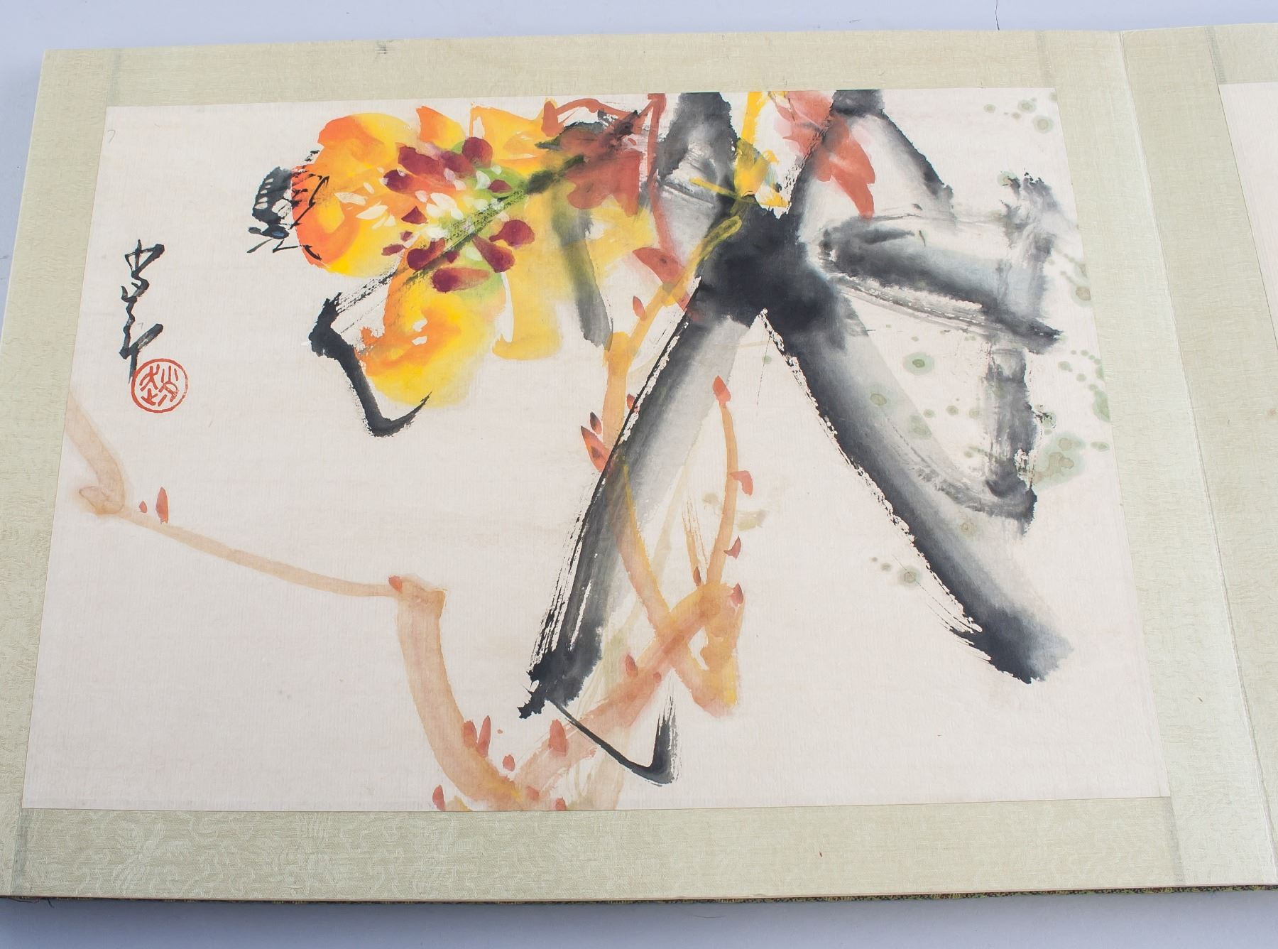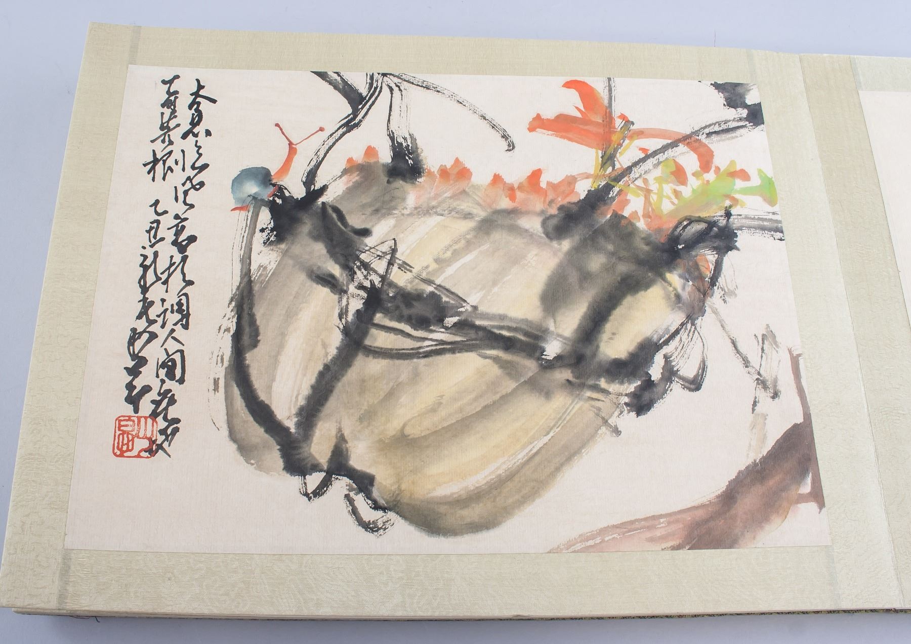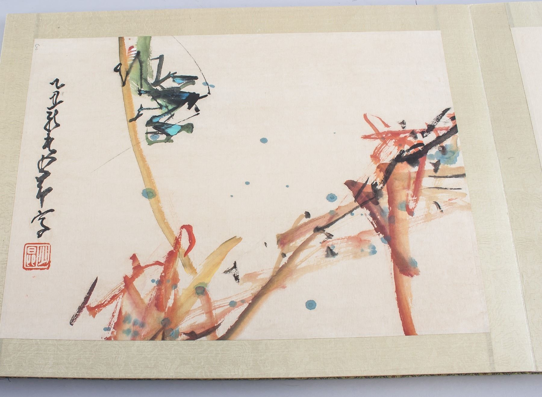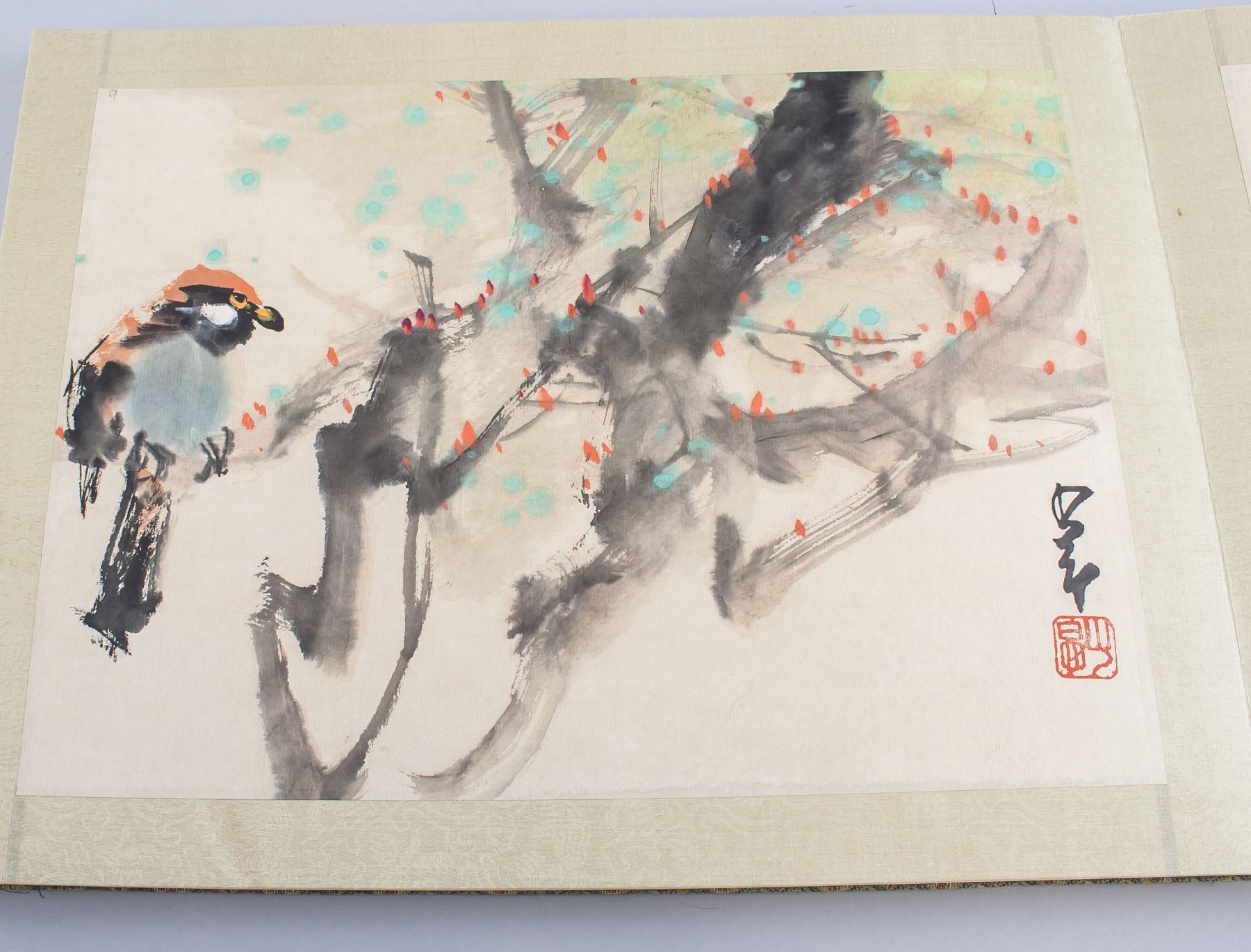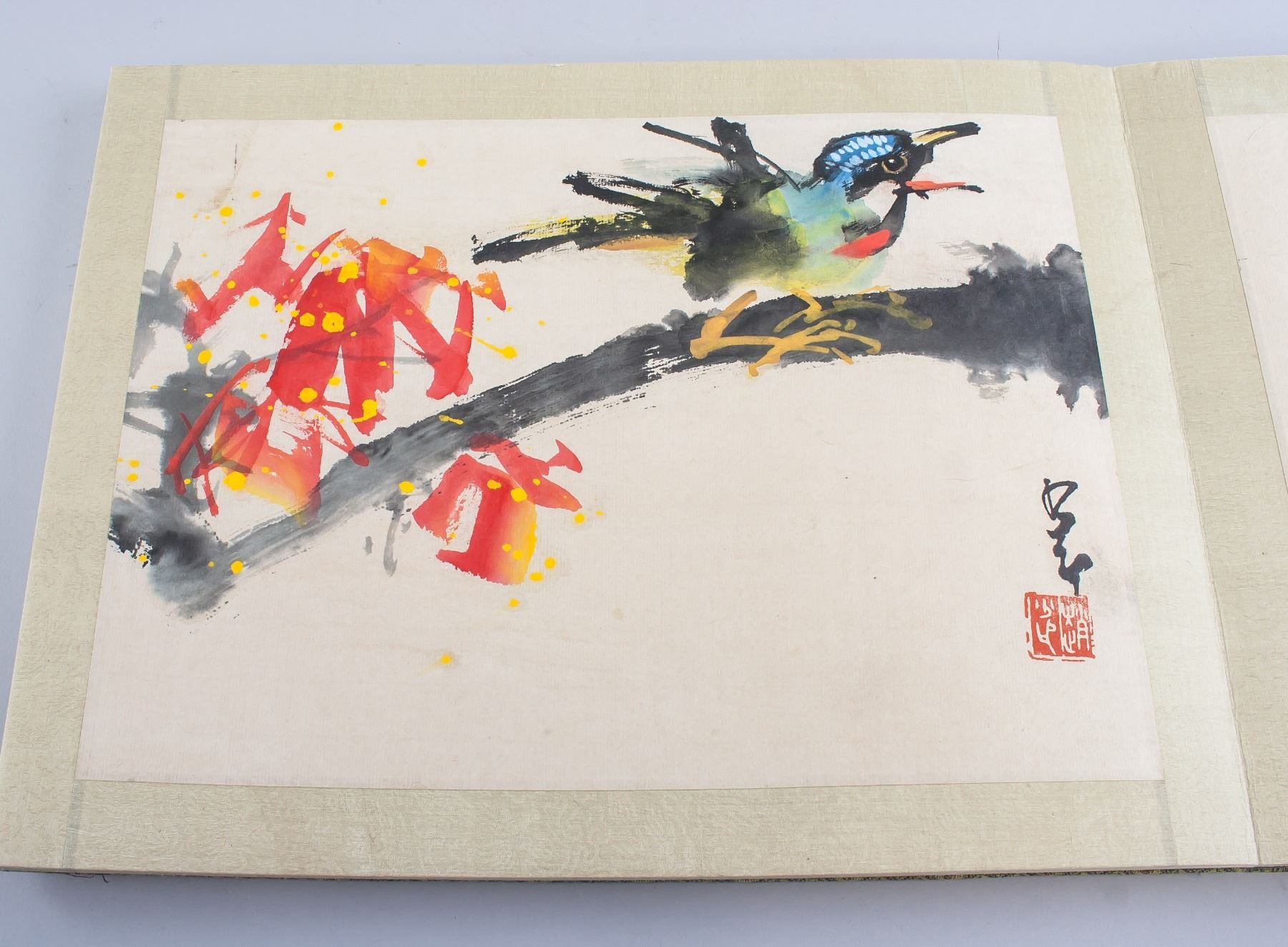 10-page of birds and insects; Chinese ink and watercolour on paper booklet; signed Zhao Shaoang (1905-1998), MBE, Chinese painter; inscribed with 10 artist seals; 29 cm x 38 cm