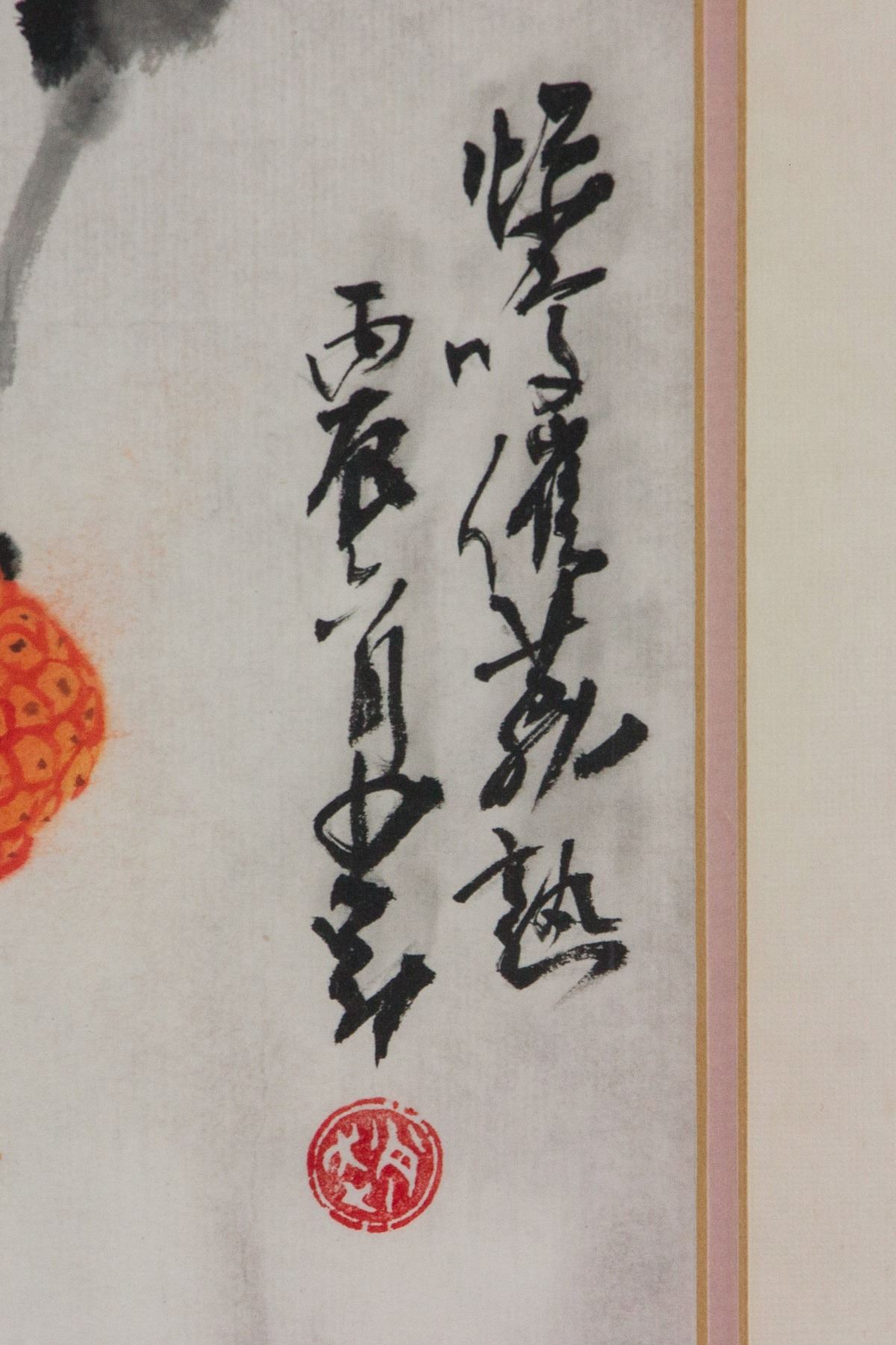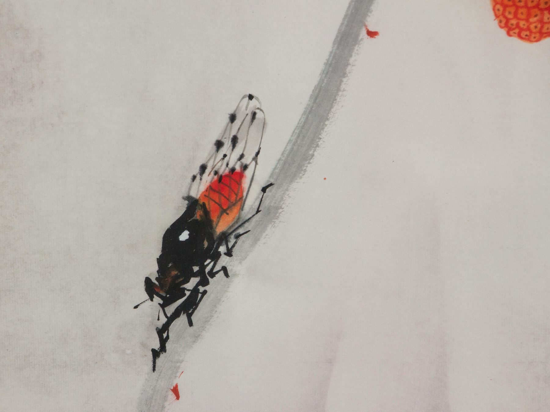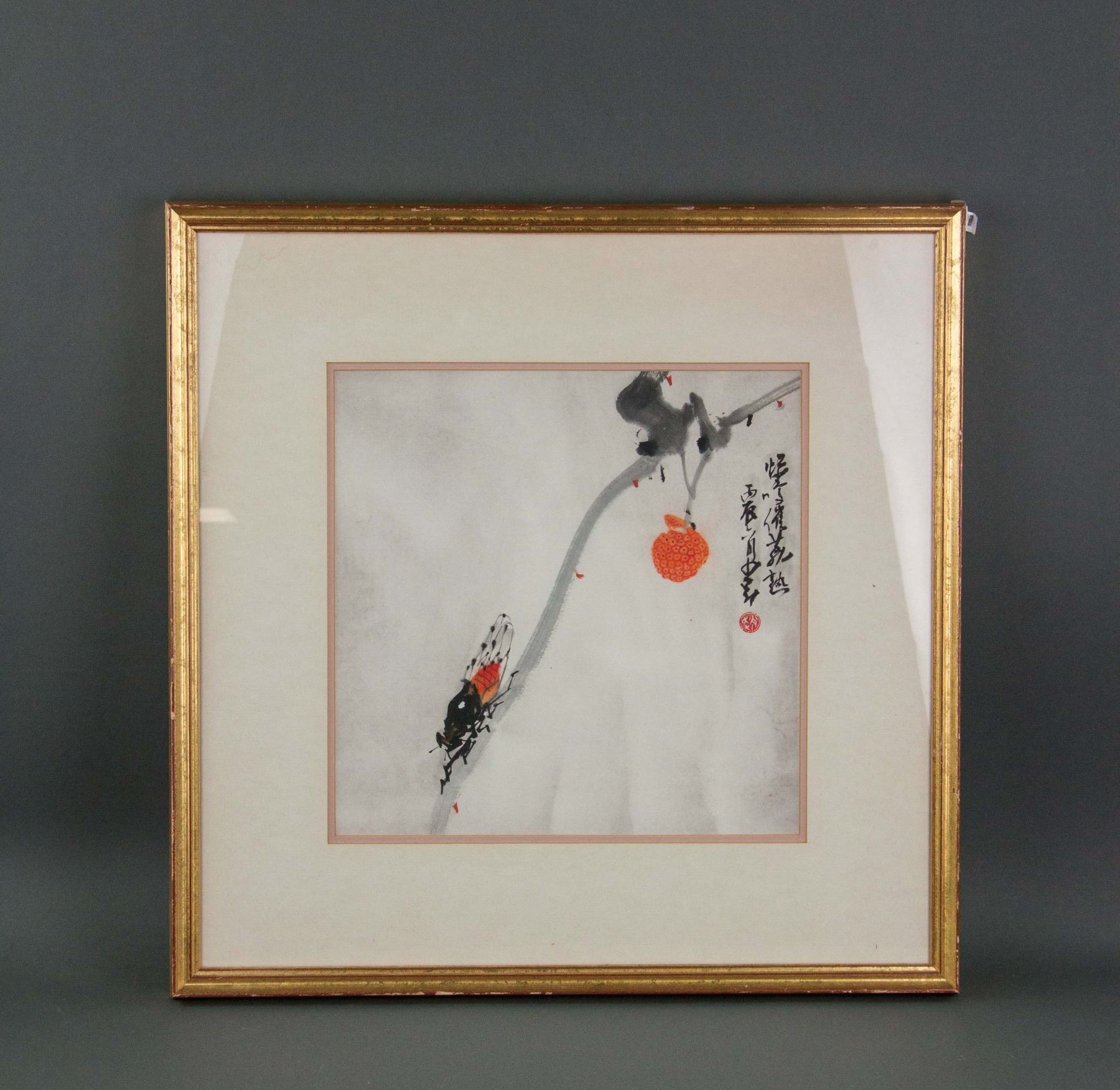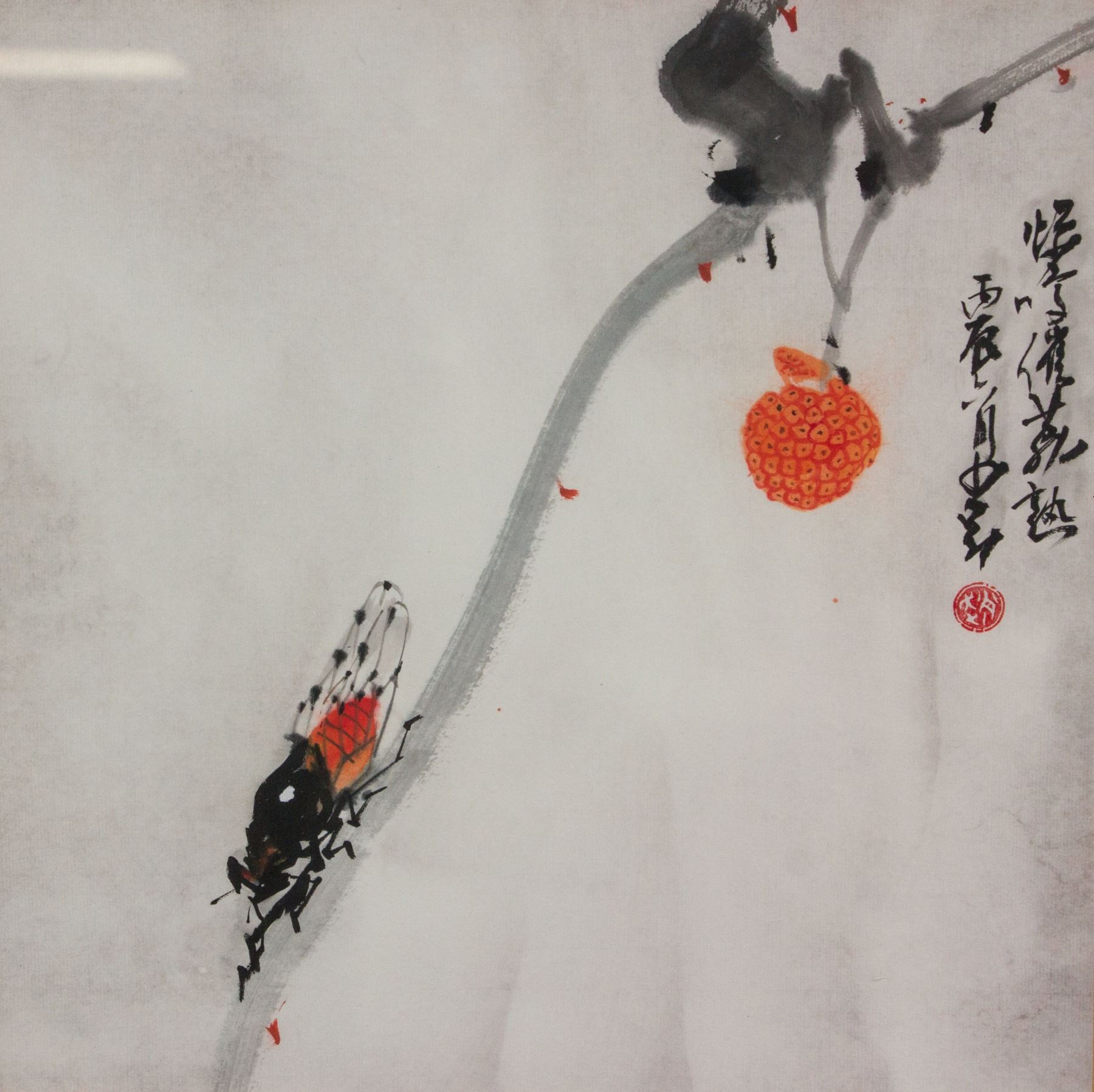 Cicada and lychee tree; Chinese ink and watercolour on paper; framed; signed Zhao Shaoang (1905-1998); inscribed with 1 artist seal; 30 cm x 30 cm