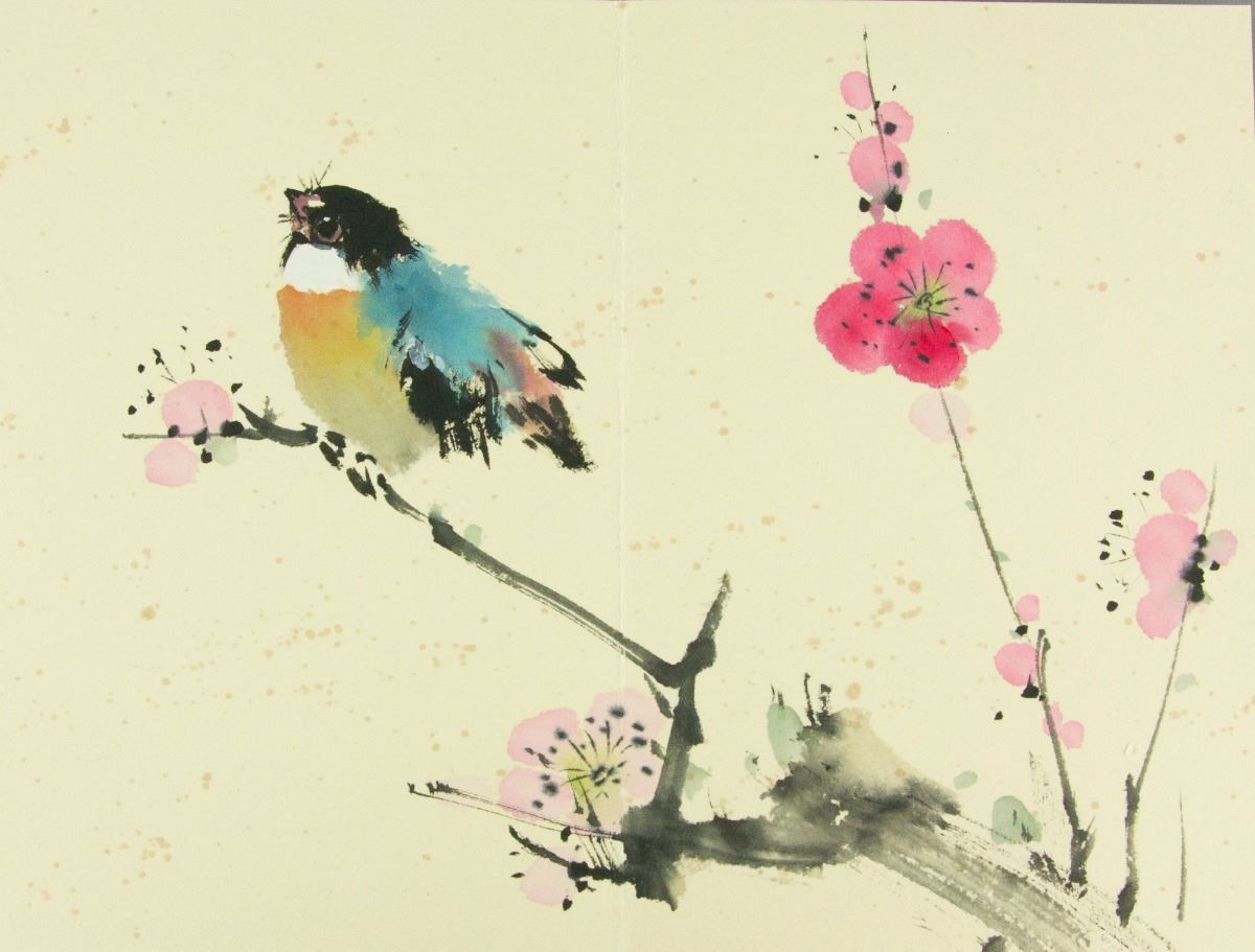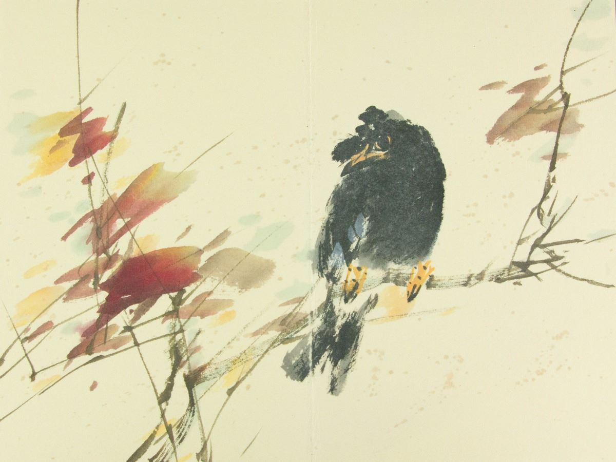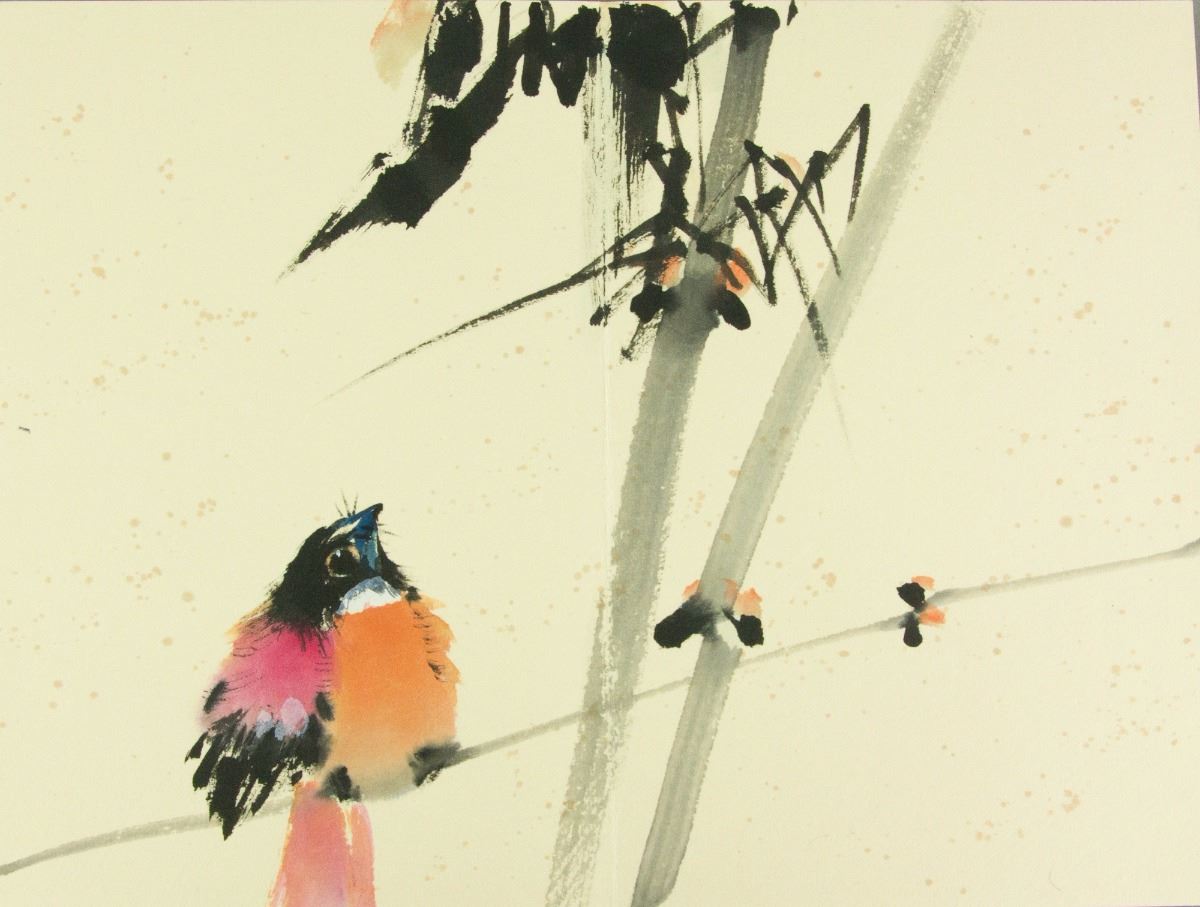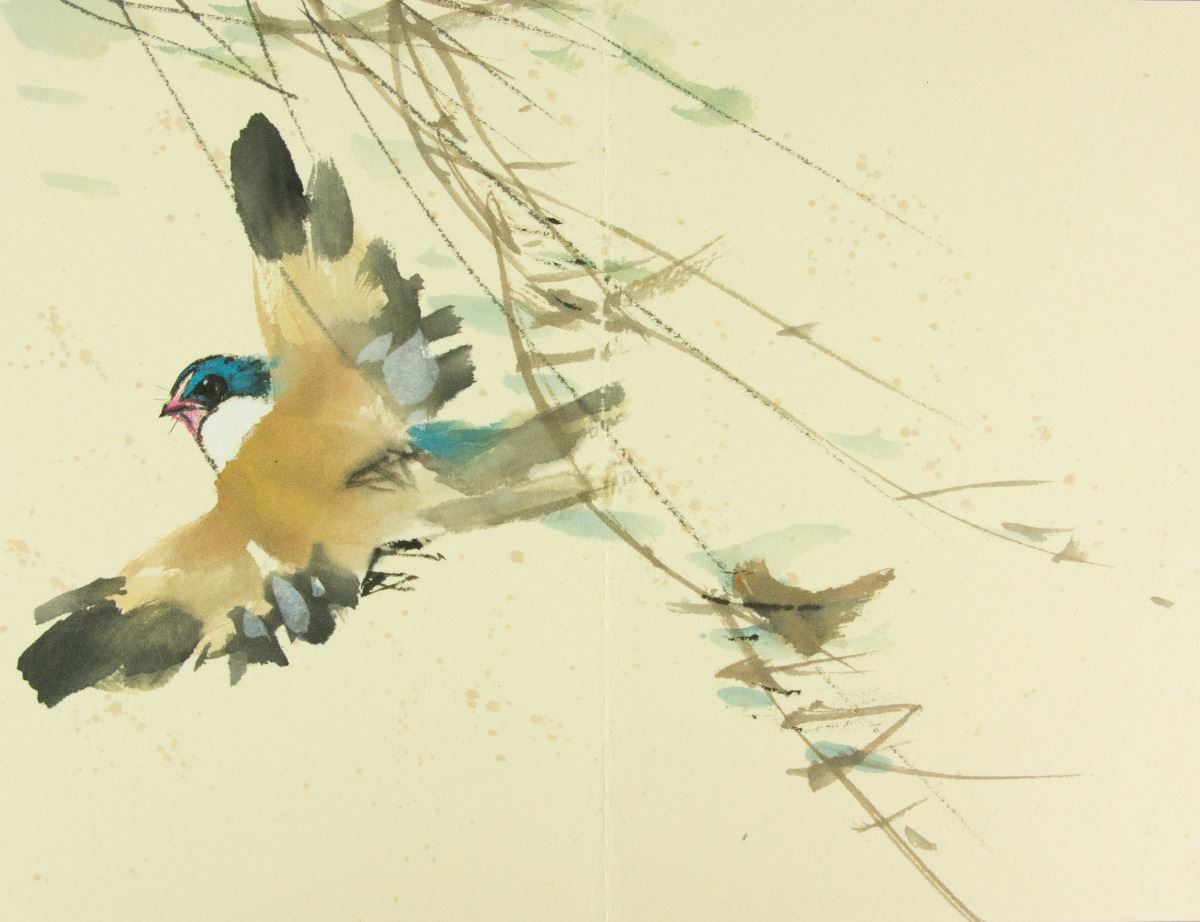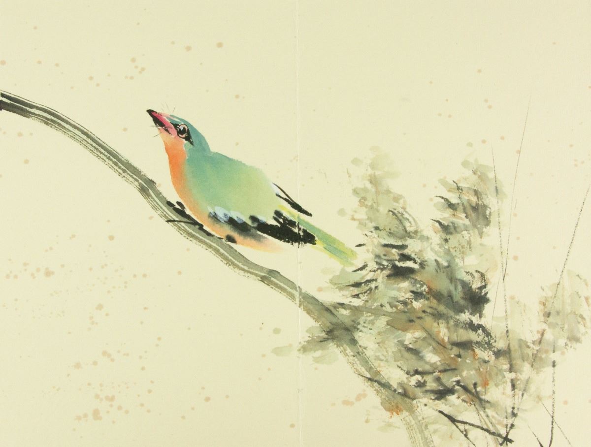 Birds perching on flower branches; Chinese ink and watercolour on paper; seven-page booklet; signed Zhao Shaoang and inscribed with two artist seals; 24 cm x 16cm