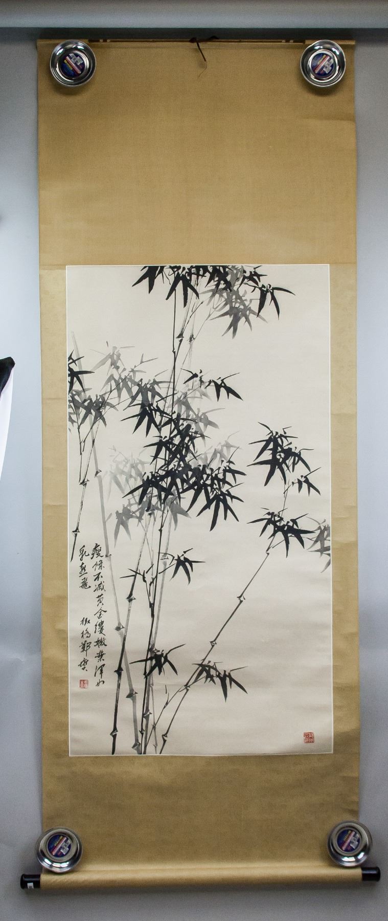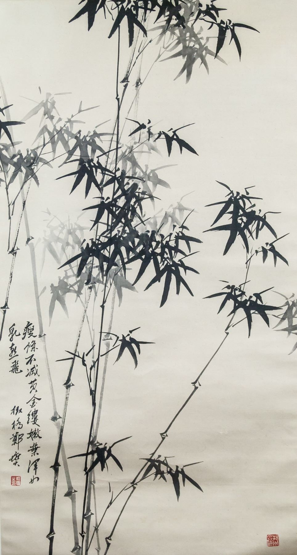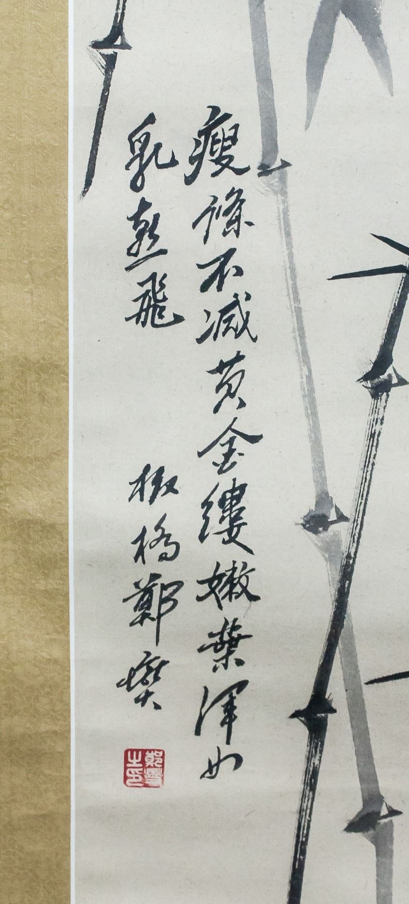 Ink on paper, hanging scroll. Featuring bamboo. Signed Zheng Banqiao (1693-1765, Chinese), inscribed with 2 artist seals. 114 x 61 cm