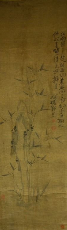 Bamboo; Chinese ink and watercolour on paper; hanging scroll; signed Zheng Banqiao (1693-1765); inscribed with 4 artist seals; 149 cm x 45.5 cm