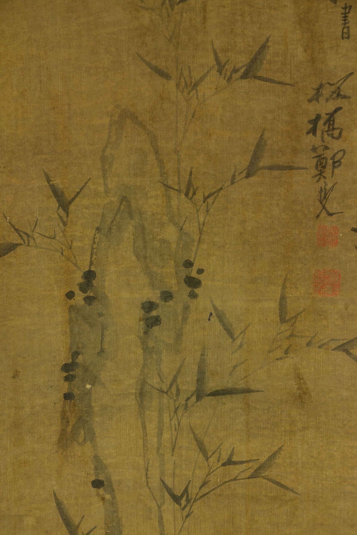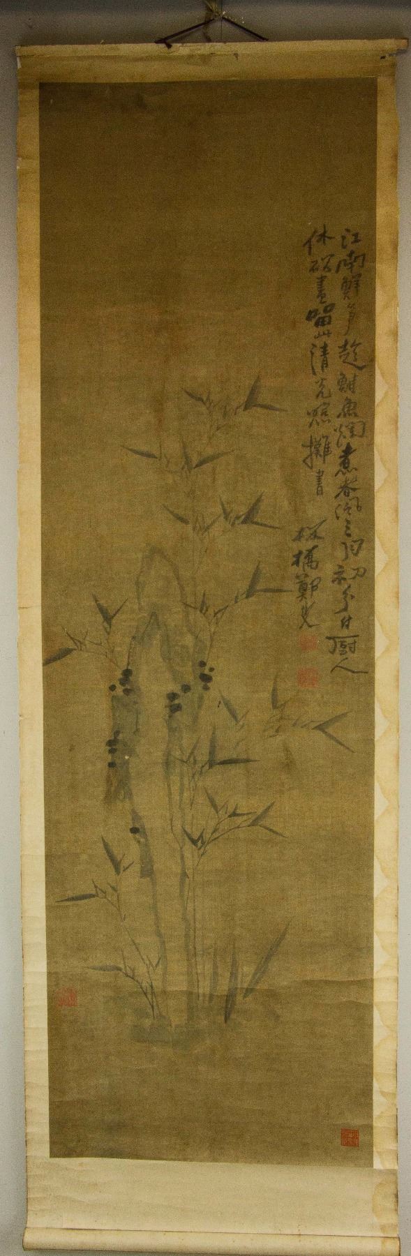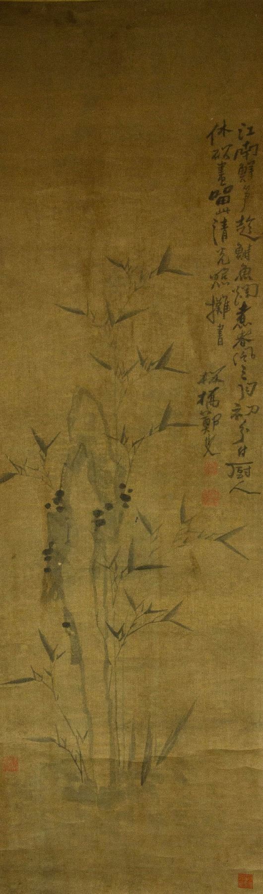 Bamboo; Chinese ink and watercolour on paper; hanging scroll; signed Zheng Banqiao (1693-1765); inscribed with 4 artist seals; 149 cm x 45.5 cm
