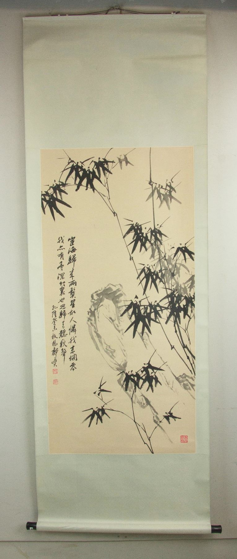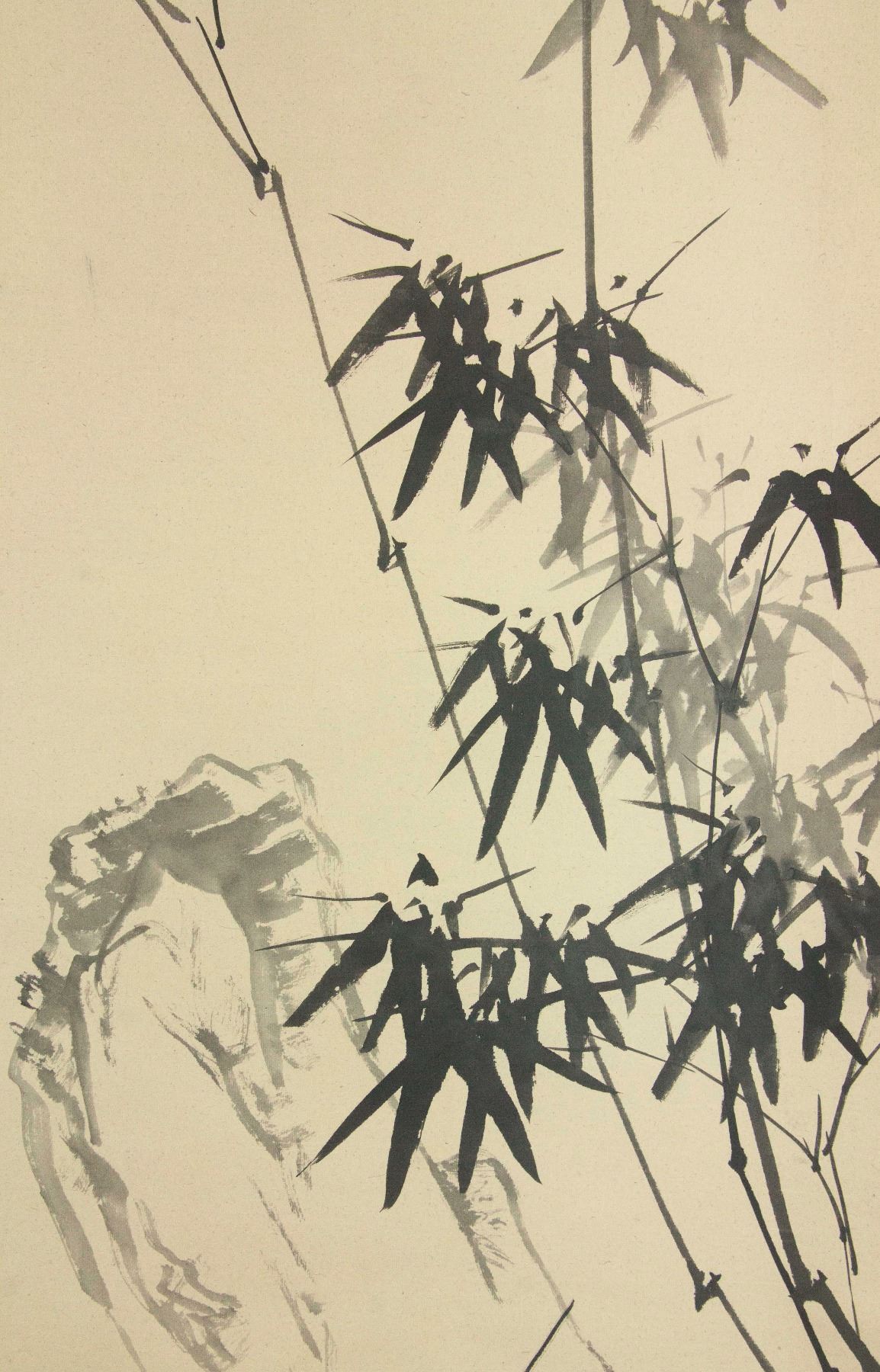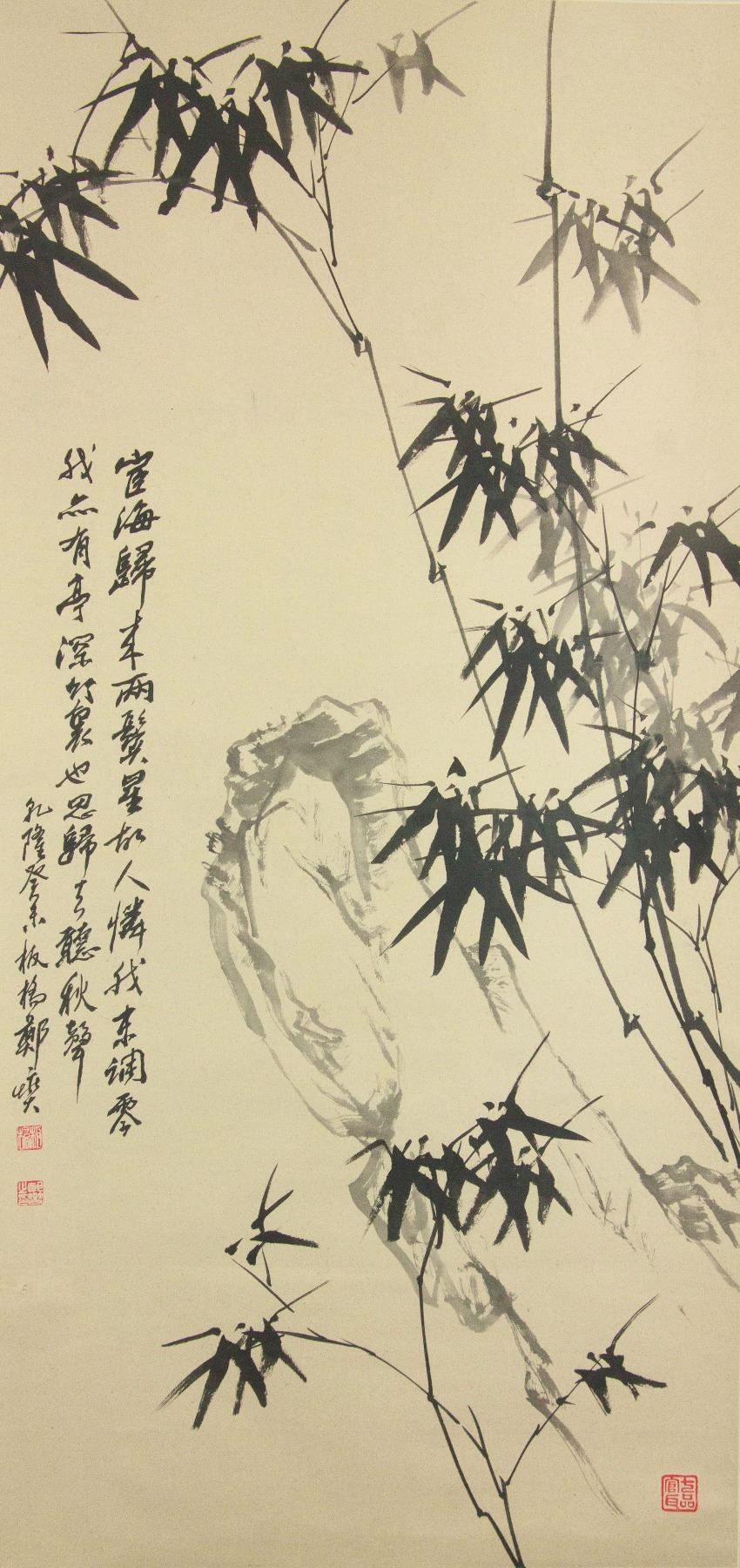 Bamboo and craggy rock; Chinese ink on paper; hanging scroll; signed Zheng Banqiao (1693-1766); inscribed with 3 artist seals; 120 cm × 59 cm