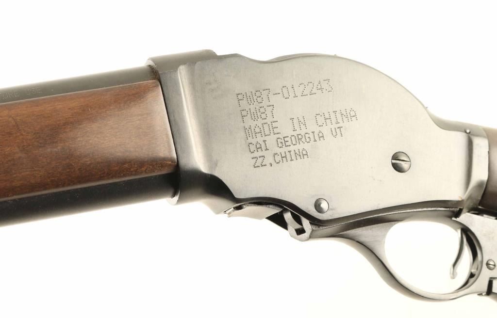 SN: PW87-012243 Shotgun. Lever-Action. Chinese made shotgun in the style of the Winchester Model 1887. 20 1/4" round barrel Dark walnut stack, and forearm. 2 3/4" chamber. Lead shot only. Imported by CAI, marked on left receiver. Fed from tube magazine. Bore is excellent/bright. Action is crisp/tight. Blued metal finish is about 98%, with a couple of minor rubs/scratches, Wood is excellent. Shotgun is in almost new condition. NRA condition-Excellent. Modern Firearm.