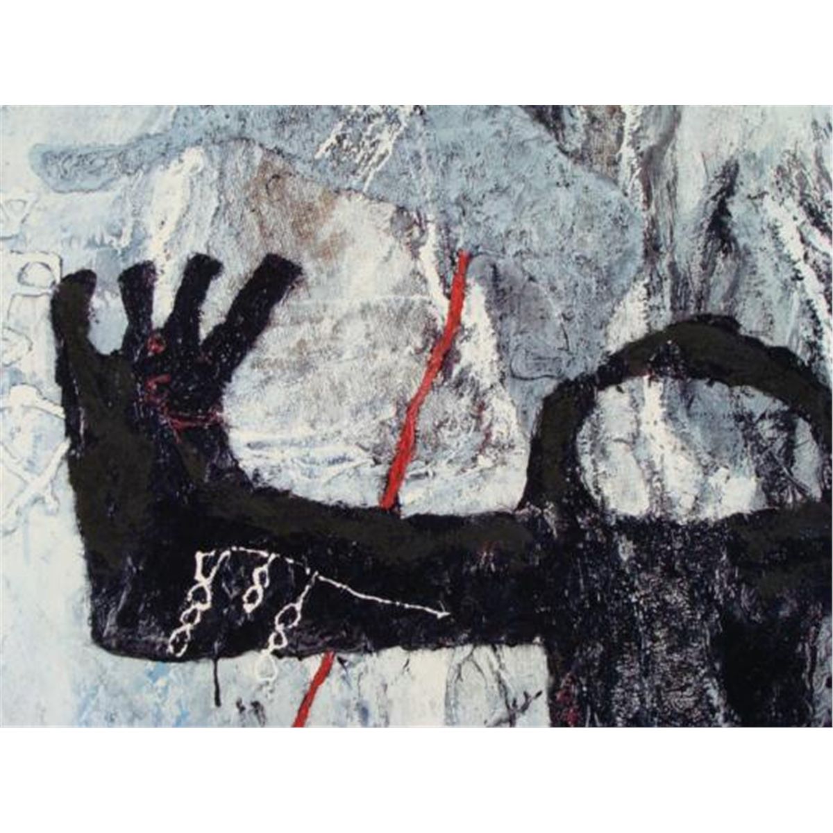 This is a Giclée Art Print by the Zhou Brothers. The symbols on this print are like hieroglyphics, or cave paintings, and the hand embellished areas of black enhance the naturalistic appearance. Artist(s): The Zhou Brothers Signature: Signed "Zhou B" in pencil, lower right Edition: Numbered 2/99, in pencil, lower left Title: "Human Symbol" Medium: Giclée on paper, with hand embellishments Image size: 29 x 39 inches Sheet size: 35 x 45 inches Condition: Excellent; slight crease marks at the corners, readily matted out Certificate of Authenticity: Included This print recalls the ancient mystery of human symbols. Artist Biography: * The Zhou Brothers, Shan Zuo and DaHuang Zhou, were born in 1952 and 1957 in China. They studied art as well as drama, and both received MFAs from the National Academy for Arts and Crafts in Beijing. Their style developed into one of collaboration, comprising painting, performance, and sculpture. Their aesthetic is based on a combination of Eastern and Western philosophy. Their work became widely recognized, and they won the National Prize of Chinese Avant-Garde of the Ministry of Culture, and the Prize for Creativity from the United Nations Peace Corps. Seeking an environment in which to expand their art, they left the political confines of China for the U.S., where they settled in Chicago, where they are now based. * Their work can be found in private and public collections around the world, including, in Shanghai, China, the National Gallery and the International Cultural Palace, and in Chicago at the United Airlines offices, and Encyclopedia Britannica. The brothers also established their Zhou B. Center in Chicago as a large gallery space to exhibit an eclectic variety of visual artists. *