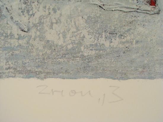 This is a Giclée Art Print by the Zhou Brothers. The symbols on this print are like hieroglyphics, or cave paintings, and the hand embellished areas of black enhance the naturalistic appearance. Artist(s): The Zhou Brothers Signature: Signed "Zhou B" in pencil, lower right Edition: Numbered 2/99, in pencil, lower left Title: "Human Symbol" Medium: Giclée on paper, with hand embellishments Image size: 29 x 39 inches Sheet size: 35 x 45 inches Condition: Excellent; slight crease marks at the corners, readily matted out Certificate of Authenticity: Included This print recalls the ancient mystery of human symbols. Artist Biography:The Zhou Brothers, Shan Zuo and DaHuang Zhou, were born in 1952 and 1957 in China. They studied art as well as drama, and both received MFAs from the National Academy for Arts and Crafts in Beijing. Their style developed into one of collaboration, comprising painting, performance, and sculpture. Their aesthetic is based on a combination of Eastern and Western philosophy. Their work became widely recognized, and they won the National Prize of Chinese Avant-Garde of the Ministry of Culture, and the Prize for Creativity from the United Nations Peace Corps. Seeking an environment in which to expand their art, they left the political confines of China for the U.S., where they settled in Chicago, where they are now based. Their work can be found in private and public collections around the world, including, in Shanghai, China, the National Gallery and the International Cultural Palace, and in Chicago at the United Airlines offices, and Encyclopedia Britannica. The brothers also established their Zhou B. Center in Chicago as a large gallery space to exhibit an eclectic variety of visual artists.