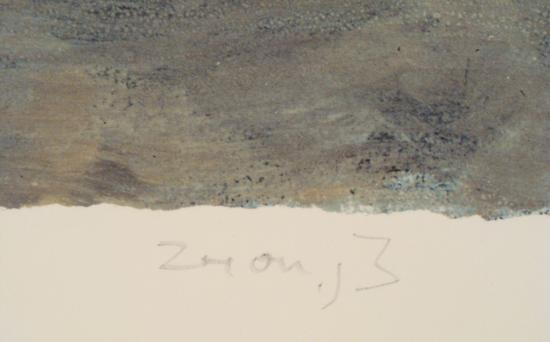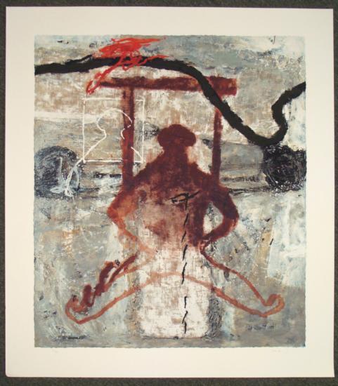 This is a Giclée Art Print by the Zhou Brothers. This abstract image features a figure, with lines of expressive movement all around. The hand embellished black and red lines at the top enhance the energy of the piece. Artist(s): The Zhou Brothers Signature: Signed "Zhou B" in pencil, lower right Edition: Numbered 4/99, in pencil, lower left Title: "Life Temperment" Medium: Giclée on paper, with hand embellishments Image size: 28 3/4 x 33 inches Sheet size: 35 x 39 1/4 inches Condition: Excellent; slight crease at lower left corner, readily matted out Certificate of Authenticity: Included This piece is an engaging balance of traditional Chinese and Western art. Artist Biography: * The Zhou Brothers, Shan Zuo and DaHuang Zhou, were born in 1952 and 1957 in China. They studied art as well as drama, and both received MFAs from the National Academy for Arts and Crafts in Beijing. Their style developed into one of collaboration, comprising painting, performance, and sculpture. Their aesthetic is based on a combination of Eastern and Western philosophy. Their work became widely recognized, and they won the National Prize of Chinese Avant-Garde of the Ministry of Culture, and the Prize for Creativity from the United Nations Peace Corps. Seeking an environment in which to expand their art, they left the political confines of China for the U.S., where they settled in Chicago, where they are now based. * Their work can be found in private and public collections around the world, including, in Shanghai, China, the National Gallery and the International Cultural Palace, and in Chicago at the United Airlines offices, and Encyclopedia Britannica. The brothers also established their Zhou B. Center in Chicago as a large gallery space to exhibit an eclectic variety of visual artists. *