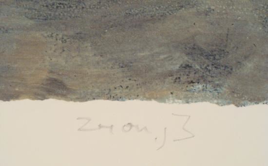 This is a Giclée Art Print by the Zhou Brothers. This abstract image features a figure, with lines of expressive movement all around. The hand embellished black and red lines at the top enhance the energy of the piece. Artist(s): The Zhou Brothers Signature: Signed "Zhou B" in pencil, lower right Edition: Numbered 4/99, in pencil, lower left Title: "Life Temperment" Medium: Giclée on paper, with hand embellishments Image size: 28 3/4 x 33 inches Sheet size: 35 x 39 1/4 inches Condition: Excellent; slight crease at lower left corner, readily matted out Certificate of Authenticity: Included This piece is an engaging balance of traditional Chinese and Western art. Artist Biography:The Zhou Brothers, Shan Zuo and DaHuang Zhou, were born in 1952 and 1957 in China. They studied art as well as drama, and both received MFAs from the National Academy for Arts and Crafts in Beijing. Their style developed into one of collaboration, comprising painting, performance, and sculpture. Their aesthetic is based on a combination of Eastern and Western philosophy. Their work became widely recognized, and they won the National Prize of Chinese Avant-Garde of the Ministry of Culture, and the Prize for Creativity from the United Nations Peace Corps. Seeking an environment in which to expand their art, they left the political confines of China for the U.S., where they settled in Chicago, where they are now based. Their work can be found in private and public collections around the world, including, in Shanghai, China, the National Gallery and the International Cultural Palace, and in Chicago at the United Airlines offices, and Encyclopedia Britannica. The brothers also established their Zhou B. Center in Chicago as a large gallery space to exhibit an eclectic variety of visual artists.