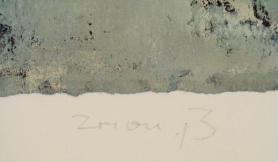 This is a Giclée Art Print by the Zhou Brothers. The various forms and lines here have many layers and textures. The lines in red and black are hand embellished, adding to the depth. Artist(s): The Zhou Brothers Signature: Signed "Zhou B" in pencil, lower right Edition: Numbered 4/99, in pencil, lower left Title: "Memory" Medium: Giclée on paper, with hand embellishments Image size: 28 3/4 x 41 inches Sheet size: 35 x 47 1/2 inches Condition: Excellent; some corner creasing, and one inch spot on left edge, all readily matted out The Zhou Brothers have attempted to paint the abstract notion of a memory, and they created an intriguing work. * Artist Biography: * The Zhou Brothers, Shan Zuo and DaHuang Zhou, were born in 1952 and 1957 in China. They studied art as well as drama, and both received MFAs from the National Academy for Arts and Crafts in Beijing. Their style developed into one of collaboration, comprising painting, performance, and sculpture. Their aesthetic is based on a combination of Eastern and Western philosophy. Their work became widely recognized, and they won the National Prize of Chinese Avant-Garde of the Ministry of Culture, and the Prize for Creativity from the United Nations Peace Corps. Seeking an environment in which to expand their art, they left the political confines of China for the U.S., where they settled in Chicago, where they are now based. * Their work can be found in private and public collections around the world, including, in Shanghai, China, the National Gallery and the International Cultural Palace, and in Chicago at the United Airlines offices, and Encyclopedia Britannica. The brothers also established their Zhou B. Center in Chicago as a large gallery space to exhibit an eclectic variety of visual artists. *