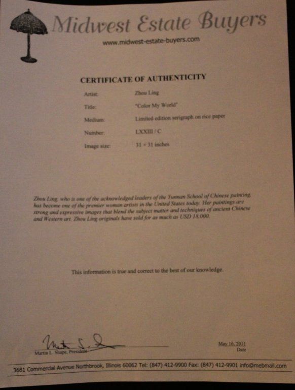Zhou Ling "Color My World" - Serigraph On Rice Paper - Limited Edition Of 100 - Hand Signed And Numbered - 31"X31"(Image) - Unframed - With Coa