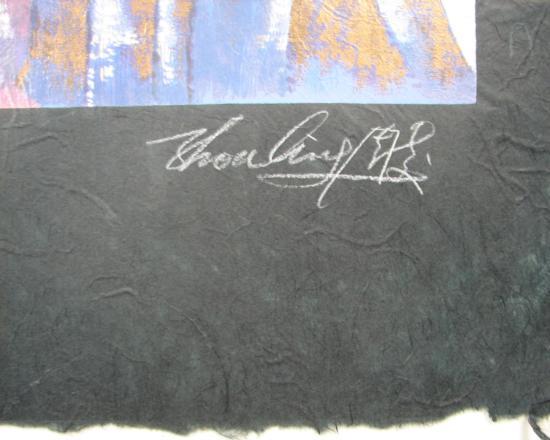 This marvelously colorful print is by the popular and accomplished artist of the Yunnan School, Zhou Ling: Title: "Goddess of the Roses" Limited edition serigraph on black rice paper Signed and numbered from an edition of 100 Image size 33 × 33 inches Excellent condition; never framed. Small spots of adhesive residue on corners, a remnant of storage mounting, will easily mat out in framing. Certificate of Authenticity Retail gallery price USD 2400 We're pleased to be able to offer this lively blend of East and West at an opening bid far below the retail gallery price. An important addition to any collection or décor!