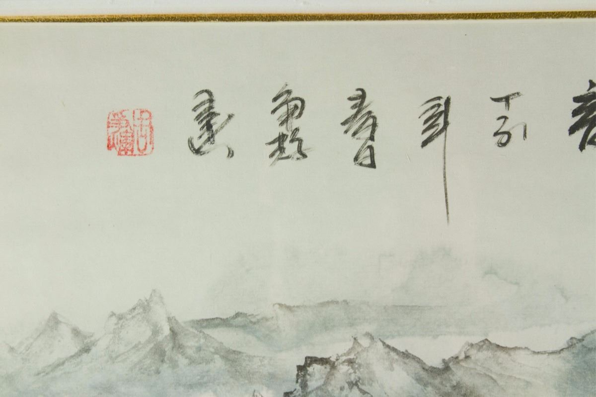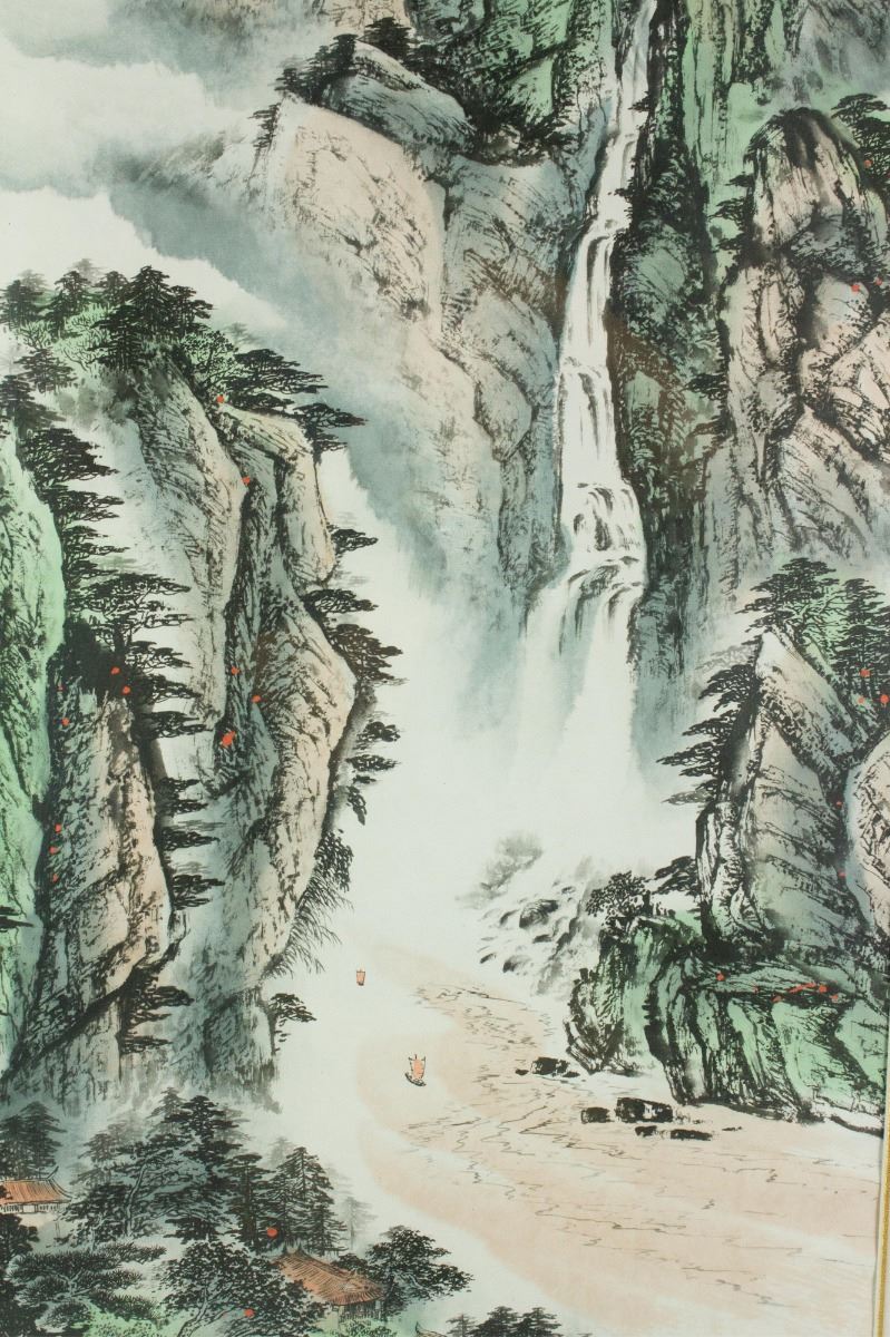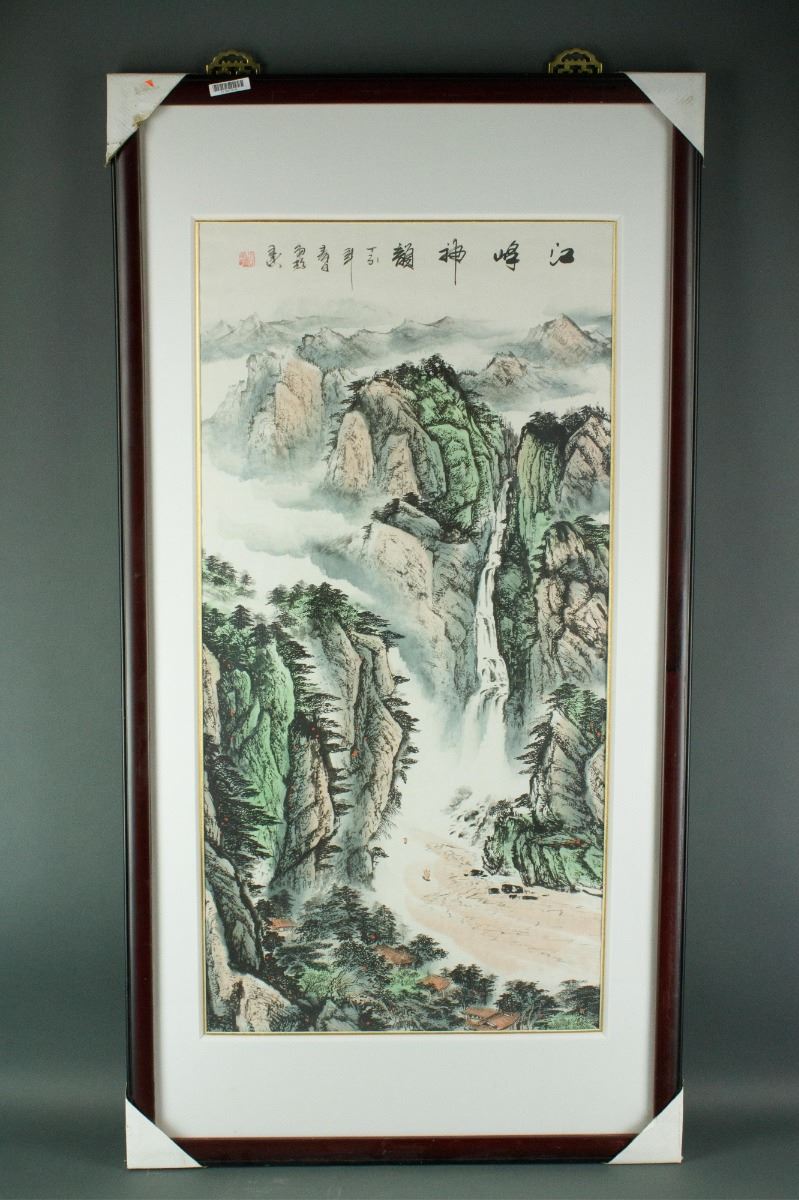 Landscape; Chinese ink and watercolour on paper; framed; signed Zhou Zhenghui (b.1951); inscribed with one artist seal; 126 cm x 66 cm with frame