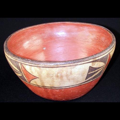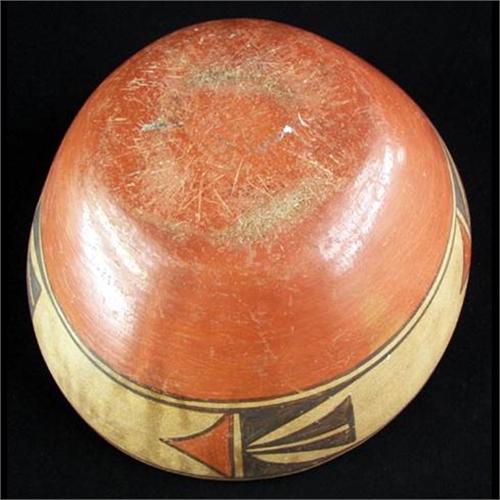 Zia Bowl, 5" tall x 10 1/2" diameter, circa 1920-1925, Condition - several small chips inside, Provenance: From a Colorado Private Collection