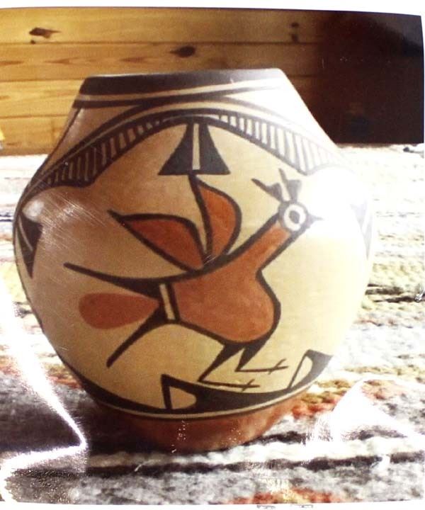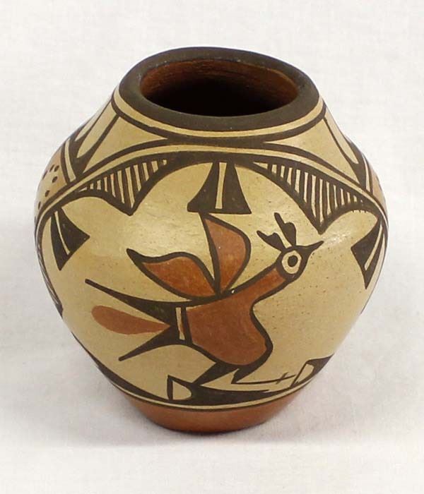 Native American Zia Pottery Bowl by Elizabeth Medina (b.1956), measures 3'' x 4'' and is signed on the bottom, FYI: ''Elizabeth Medina (b. 1956) was born on Jemez Pueblo and married into the Zia Pueblo to Marcellus Medina (b. 1954). Elizabeth was inspired by and taught to make pottery by her mother-in-law, Sophia Medina. Elizabeth strives to design with the same style and enthusiasm as her mother-in-law. Early in her career, she was granted permission by the Zia Pueblo Elders to make pottery in the Zia style and tradition early and has made Zia style pottery most of her adult life. She continues today as one of the most accomplished Zia potters, continuing with the traditional styles, shapes, and methods. Elizabeth has won numerous awards for her work at events such as Santa Fe Indian Market, and her pottery can be found in museums nationwide.''