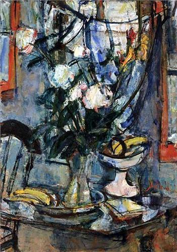 Zigmund Menkes ,1896 - 1986 ,Still Life and Flowers ,Oil on canvas ,97x68 cm ,Signed. , , , , ,