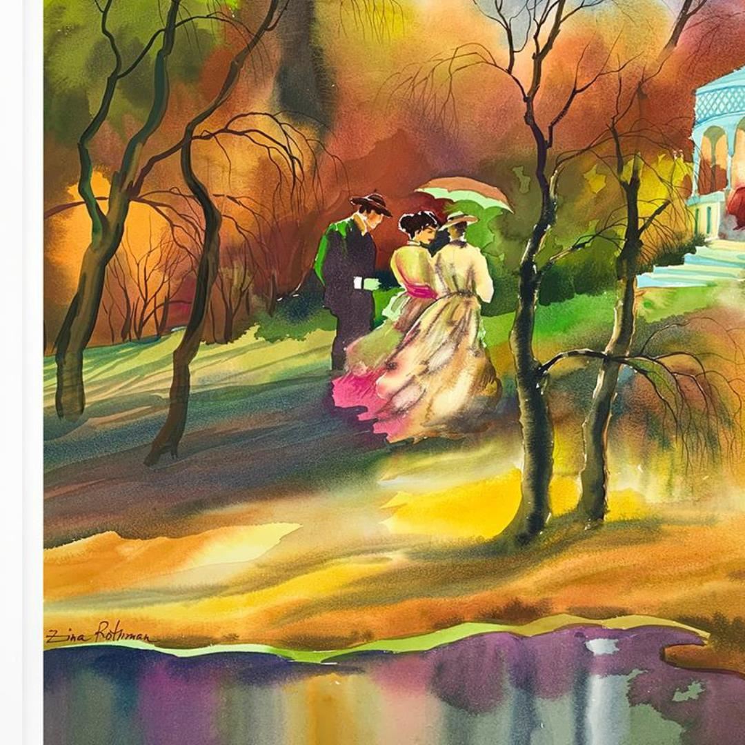 This is an untitled original painting on paper by Zina Roitman. The piece is hand signed, framed, and comes with a letter of authenticity. Measures approximately 32" x 25.5" (frame), 28" x 21.5" (sheet). This item requires special handling and may have a longer than usual turnaround.