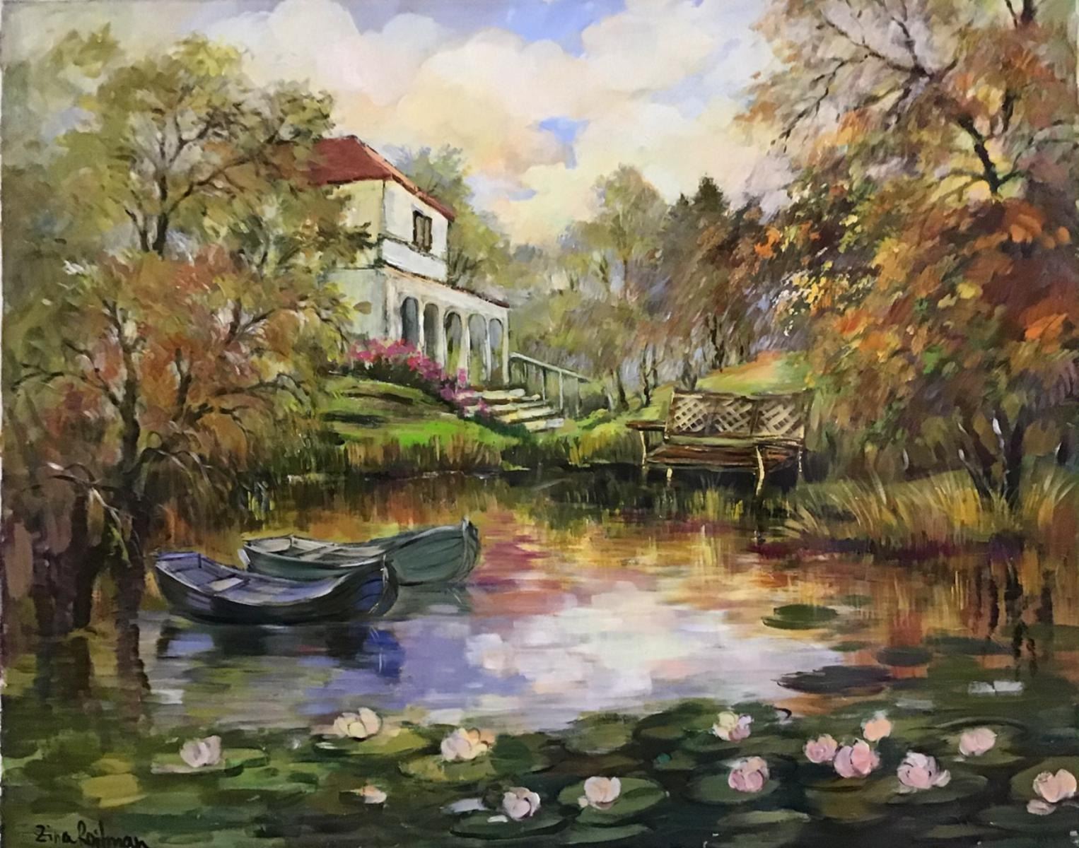 Artist: Zina Roitman. Medium: Original Oil on Canvas. Title: tranquility. Size (Unframed): 31.5" x 39". Certificate of Authenticity: Is included. Reference# 12442.
