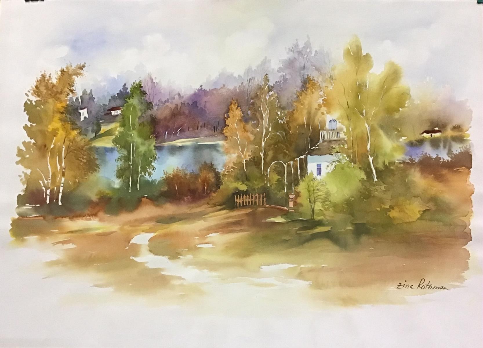 Artist: Zina Roitman. Medium: Original Watercolor. Title: Autumn. Size (Unframed): 25" x 30". Certificate of Authenticity: Is included. Reference# 12427.