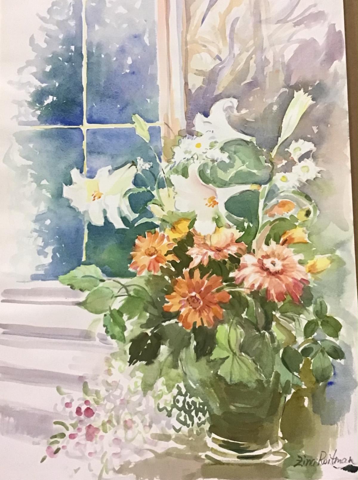 Artist: Zina Roitman. Medium: Original Watercolor. Title: Bouquet at the window. Size (Unframed): 23.5" x 16". Certificate of Authenticity: Is included. Reference# 12433.
