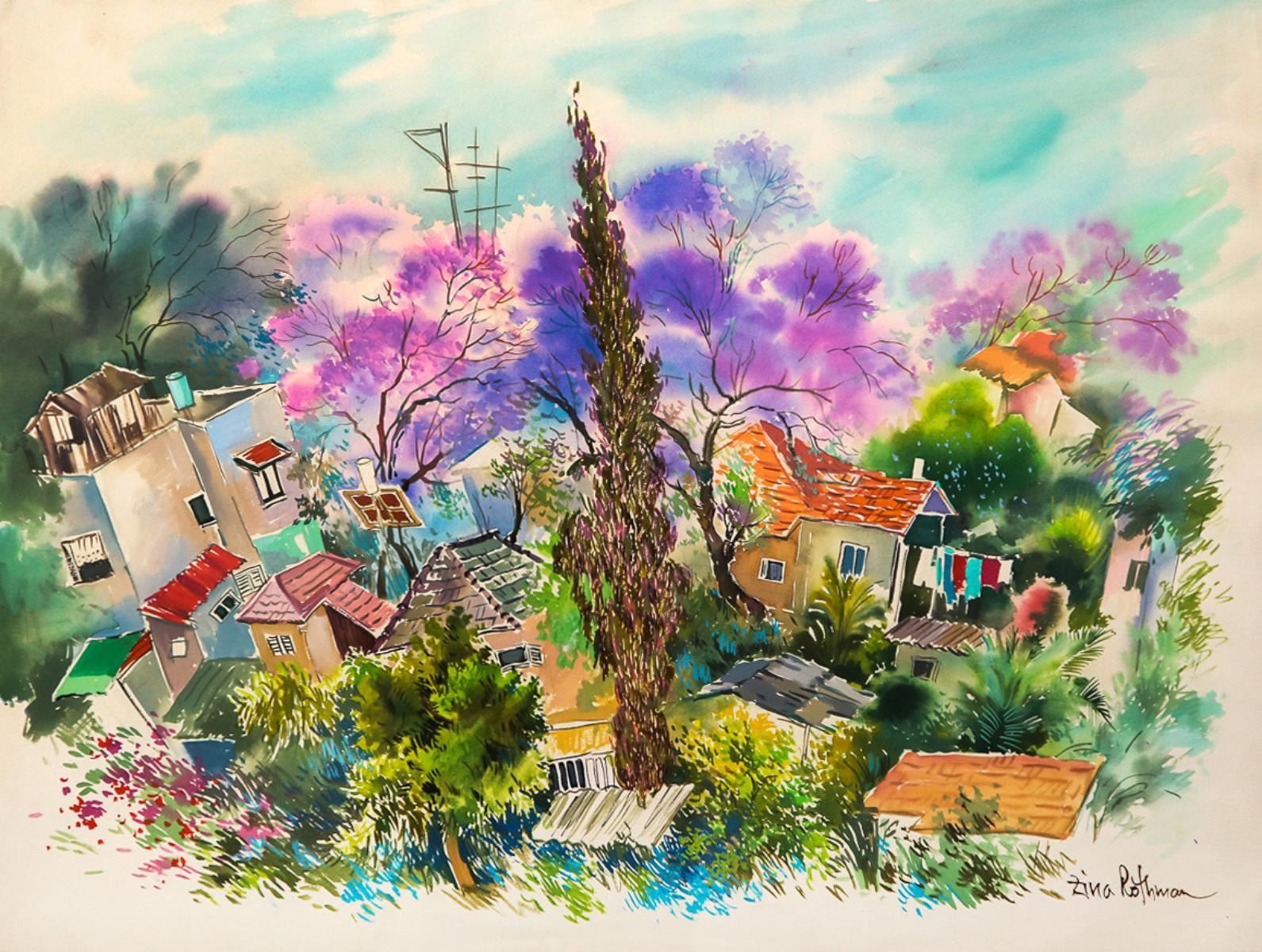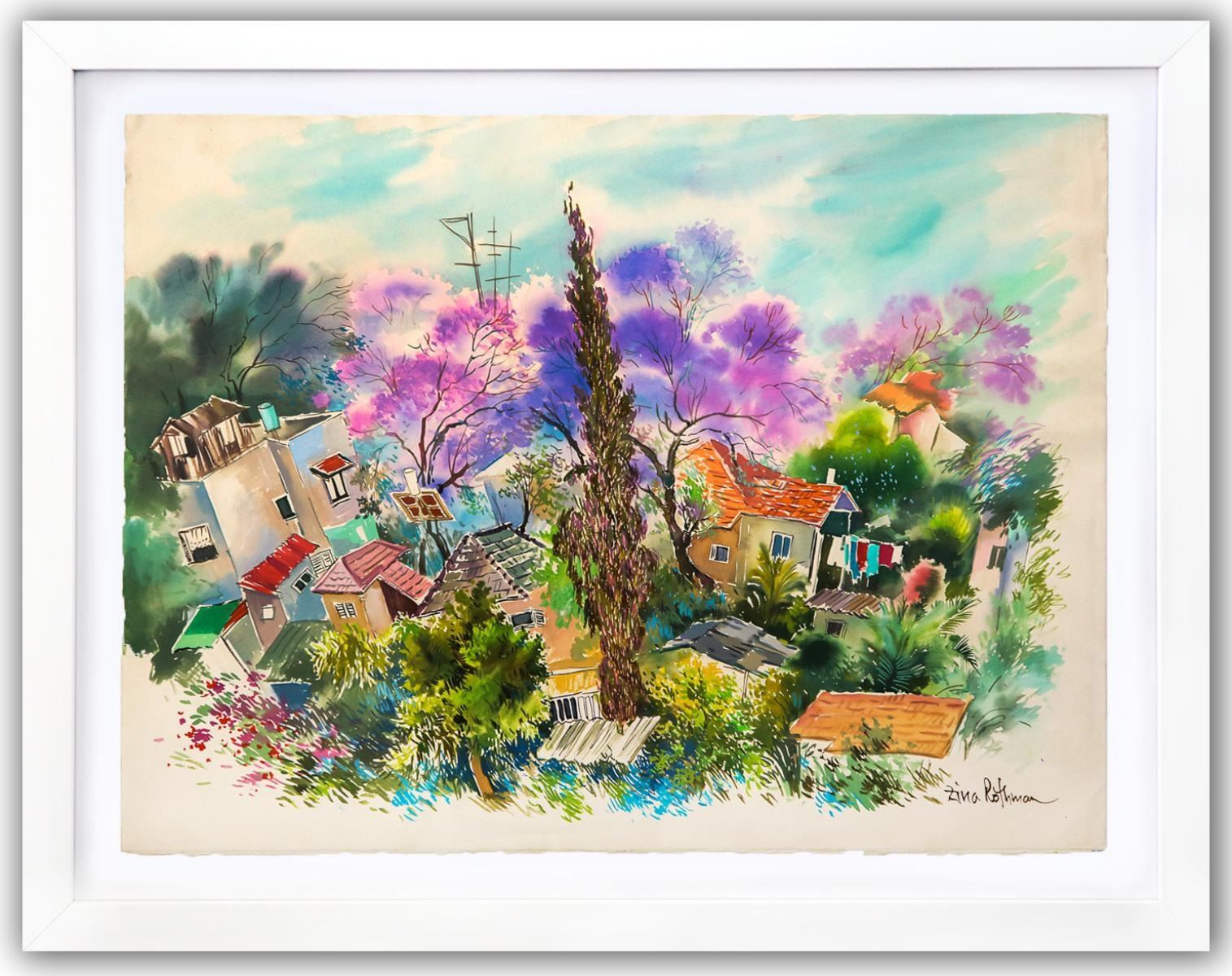 Artist: Zina Roitman. Medium: Original Watercolor. Title: Untitled. Size (Unframed): 23" x 32". Measures approx. (Framed): 30" x 38". Certificate of Authenticity: Is included. Additional: Custom framed. Reference# 17519.