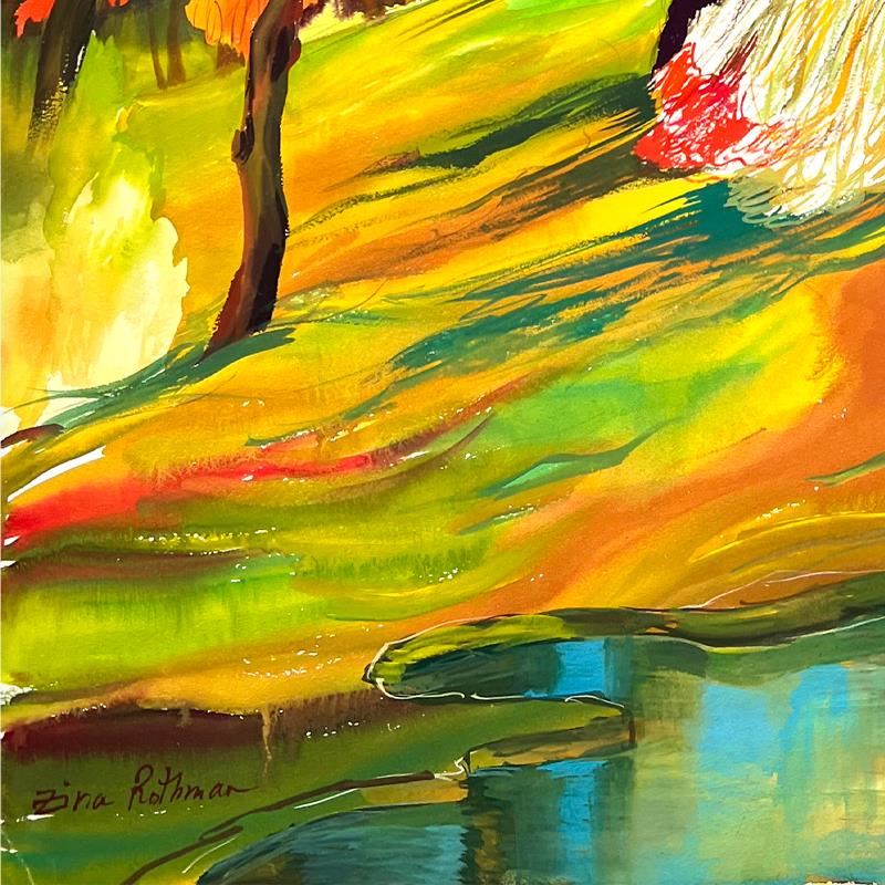 This is an untitled original painting on paper by Zina Roitman. The piece is hand signed and comes with a letter of authenticity. Measures approximately 29.5" x 21.5".