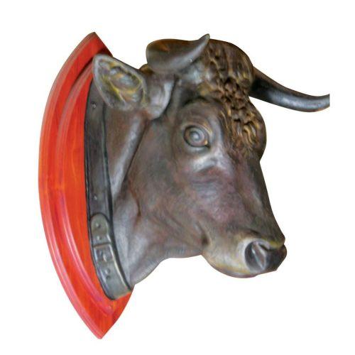 Steer Head Trade Symbol made of Zinc, possibly for a butcher. Repainted and mounted on wood. Excellent Condition. Nearly Full Size.