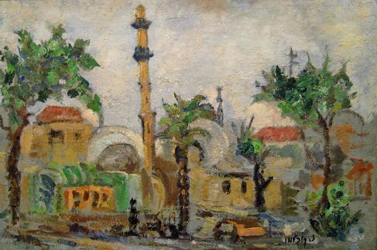 Zipora Kovelman, Israeli Art, , Landscape with Mosque, Oil on canvas, 38x55cm, Signed., , , , ,