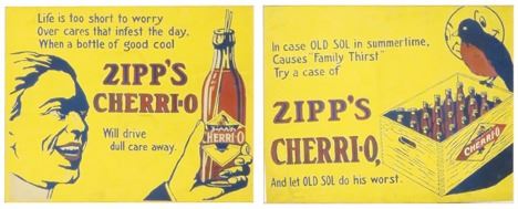 Zipp's Cherri-O Soda Original Advertising Art. Some light staining otherwise very good condition, framed under glass. . 12 3/ X 10 1/4 inches image only.