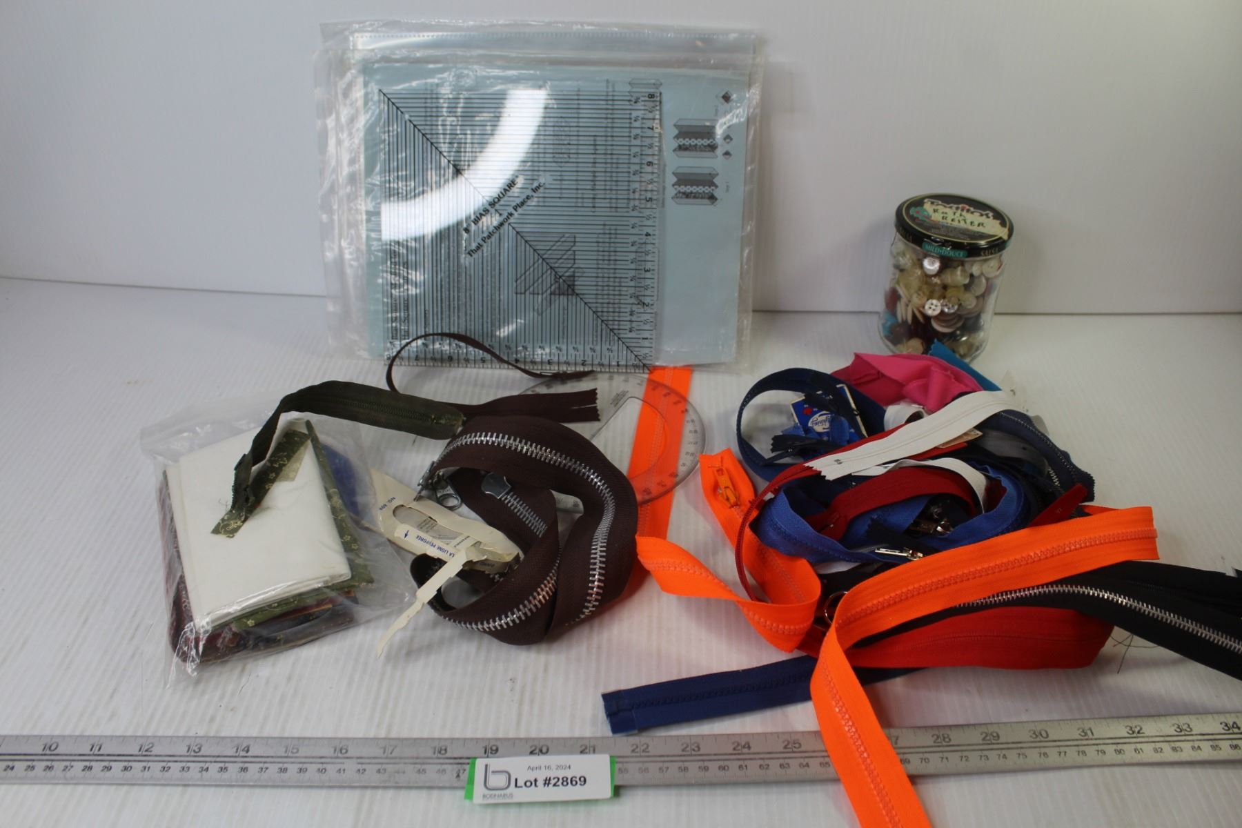Zippers - Fabric Pieces - Jar of Buttons - Patchwork 8" Bias Square