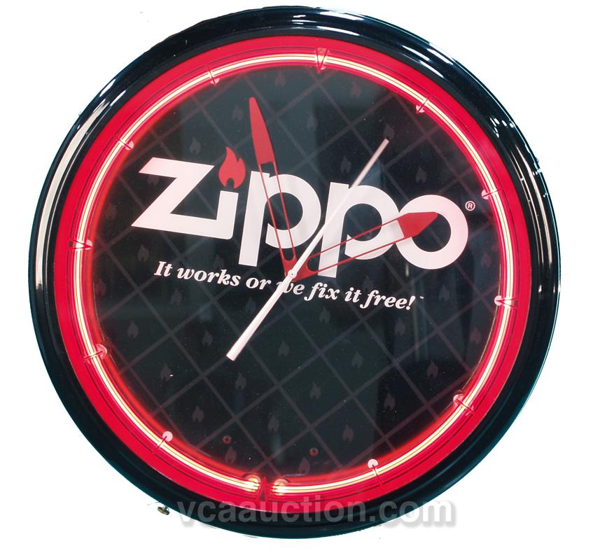 Zippo Neon Clock "It Works Or We Fix It Free" N.O.S. - 20" diam