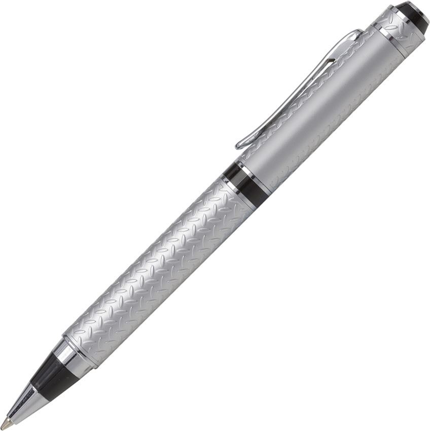 Seneca Ballpoint Pen - Solid brass diamond plate design with satin chrome finish. High polish chrome accents with black gloss detail. Features dual twist action, rigid spring steel clip with Zippo logo, and medium point black refill. NEW