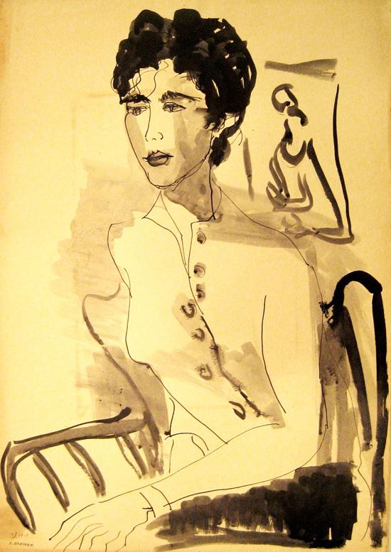 Zippora Brenner, Israeli Art, 1916 - 2010, Sitting Woman, Ink, 70x50cm, Signed., , , , ,