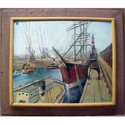 Zocchi, Fontaine, oil on board of ships at dock, signed Zocchi Fontaine (L.R.), framed, image measures approximately 20" x 23 1/2"