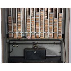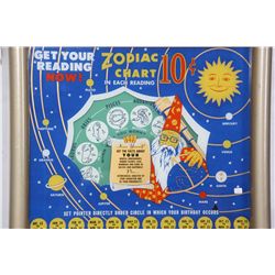 Zodiac 10 Cent Horoscope Vending Machine. The tall wood case is painted green with a reverse decorat... Show more..