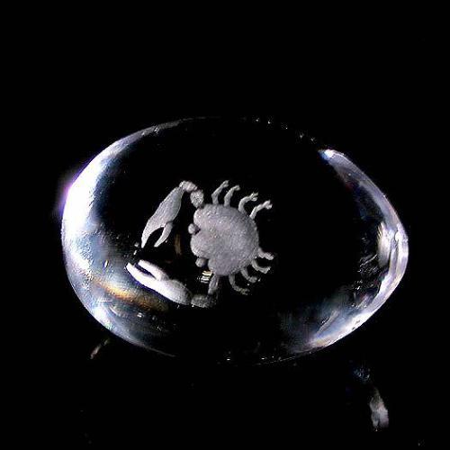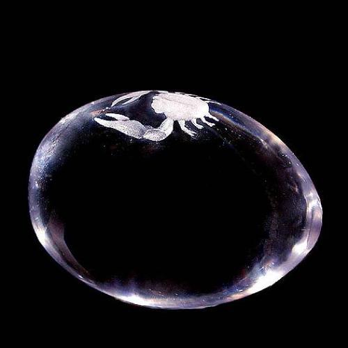 Crystal handcooler paperweight with an engraved zodiac cancer crab on one side. Height 3".