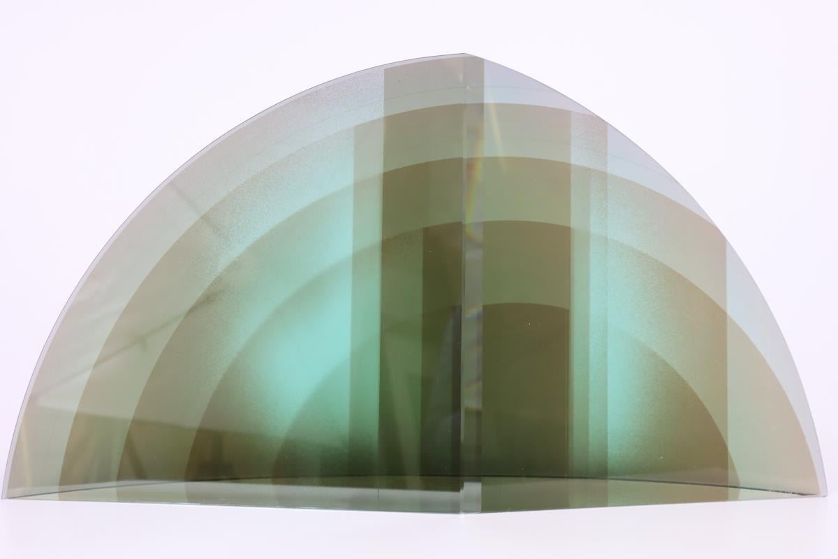 This is a beautiful laminated, cut, ground, and polished glass sculpture titled "Aurora Borealis" by Zoltán Bohus. The piece has an incredible resemblance to the northern lights as one may guess by it's title. This piece was purchased at Plateaux Gallery in Buzzards Bay, Massachusetts. Included is the original bill of sale.