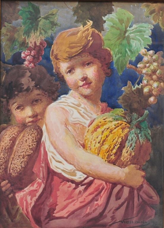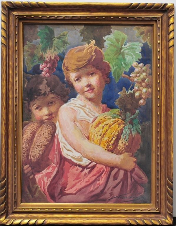 CONDITION REPORT: minor inpainting on girl's arm, otherwise excellent as viewed in frame