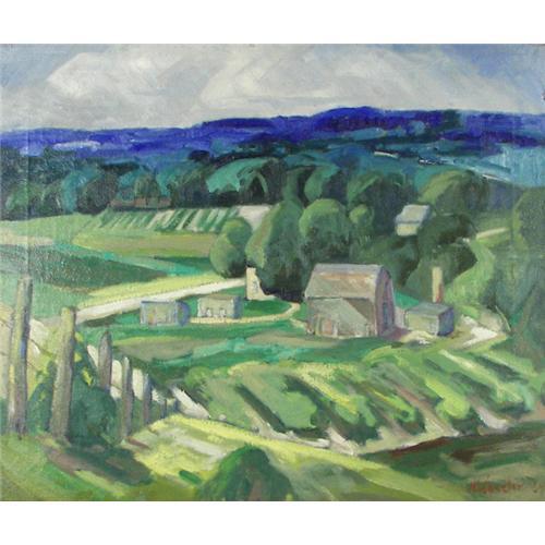 Zona Wheeler (1913-1998) Oil on Canvas, Country Landscape, 1934, 20" x 24", signed lower right