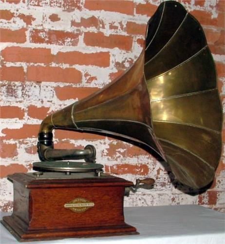 Zonophone Phonograph by Universal Talking Machine Mfg. Co. Very, very nice and original, however there are some small dents in horn. Reproducer needs a rubber gasket. A great collector’s item.