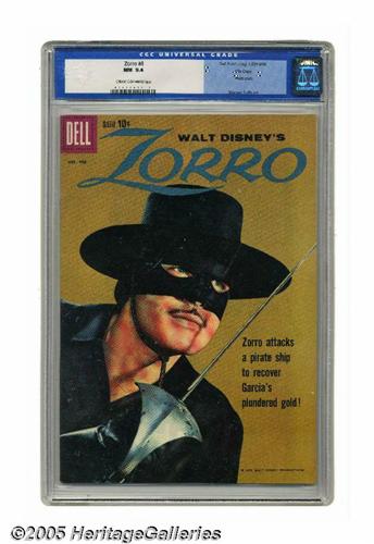 <B>Zorro #8 File Copy (Dell, 1960) CGC NM 9.4 Cream to off-white pages.</B></I> Photo cover. Warren Tufts interior art. Overstreet 2005 NM- 9.2 value = $125. CGC census 3/05: 1 in 9.4, none higher.