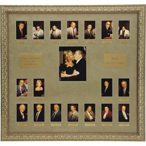 <B>Zsa Zsa Gabor CENSORED Club Lifetime Achievement Award Photo Display.</B></I> A large display from the walls of the Beverly Hills CENSORED Club, featuring 19 color snapshots of various attendees at the 1990 roast honoring Gabor, matted and framed together to an overall size of 39.5" x 37". Photos include Dick Van Patten, Jackie Cooper, Milton Berle, Henny Youngman, and others. In Excellent condition. <I>From the Beverly Hills CENSORED Club Celebrity Roast Archive.</B></I><BR><BR><b>Shipping:</b> Framed - with Glass, Medium (<a target="_blank" href="http://www.heritageauctions.com/common/shipping.php">view shipping information</a>)