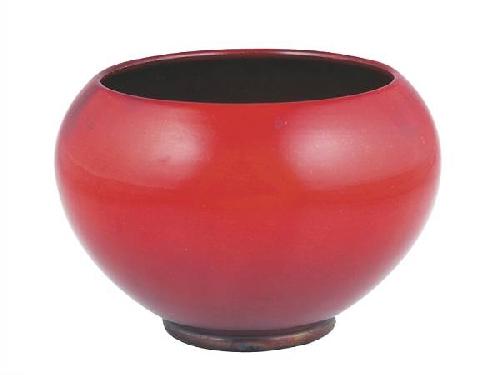 Porcelain faience, painted with ox blood glaze. Marked: pressed number and round, seal like mark. Zsolnay, Pécs, circa 1910 Size: 10 cm Diameter: 14.5 cm