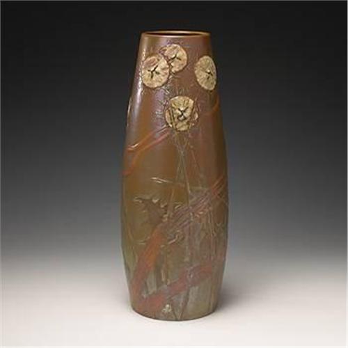 Zsolnay Pecs vase Hungary, c. 1905 glazed pottery 6 dia x 13.5 h inches Signed with impressed manufacturer's marks to underside: [Zsolnay Pecs 729936].