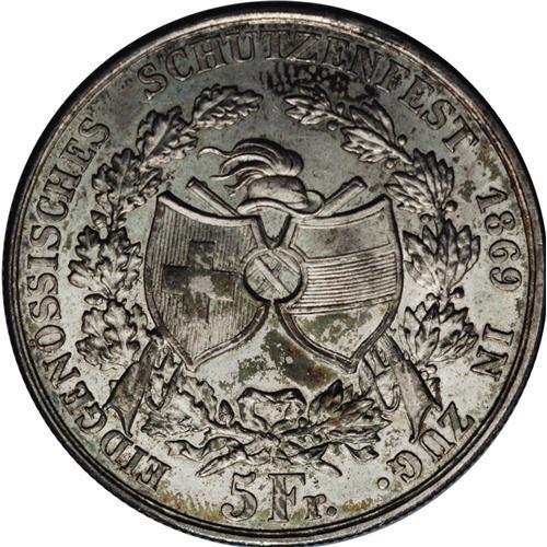 Zug. 5 Francs 1869, KM-S10, issued for the shooting fes