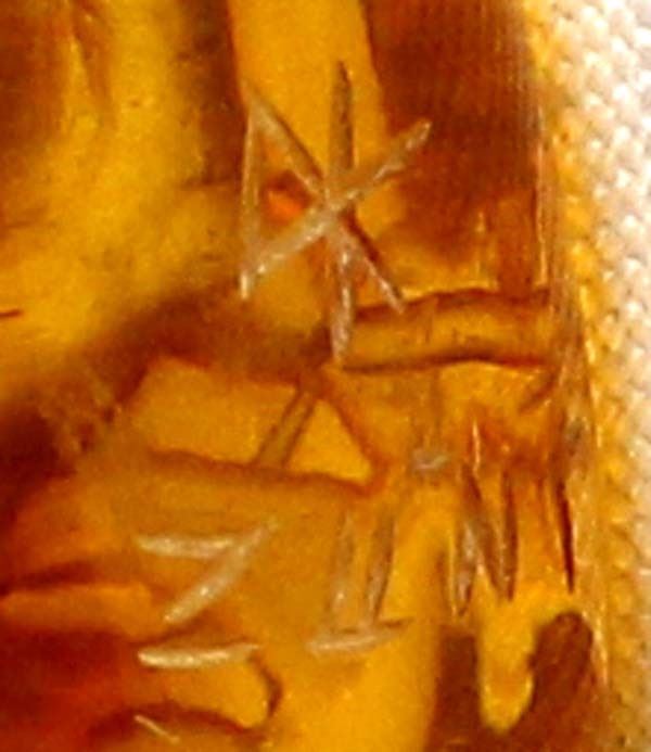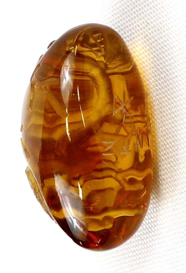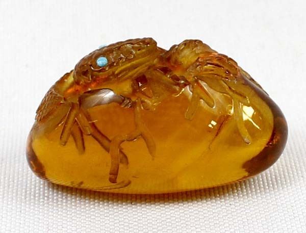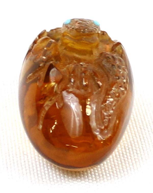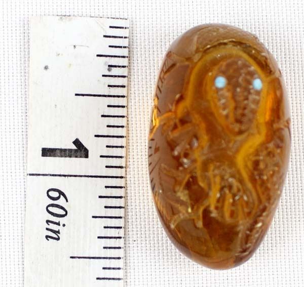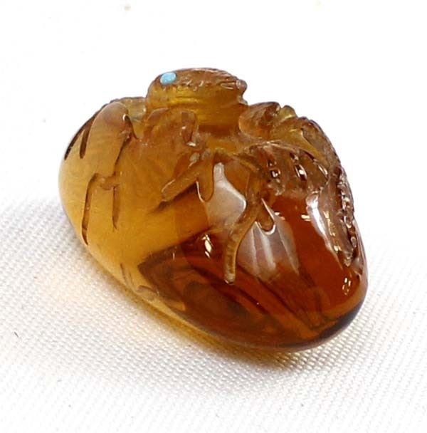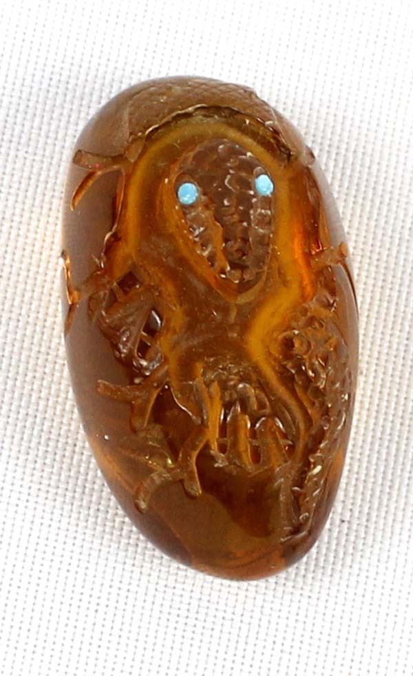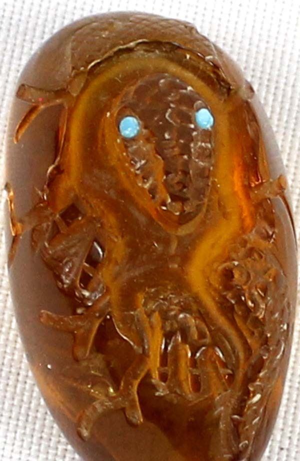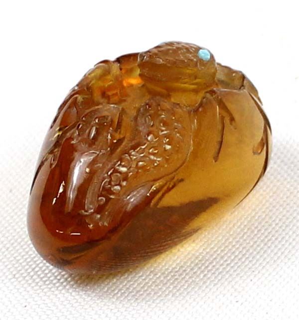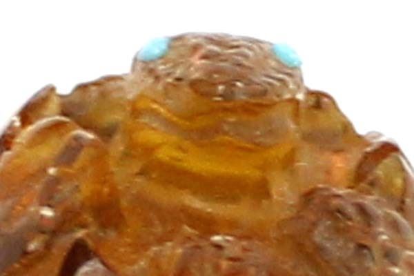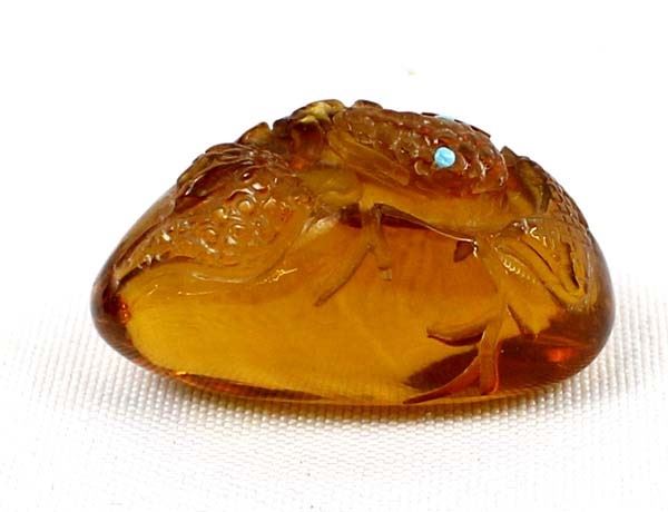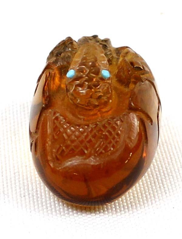 Native American Zuni Amber Hatching Lizard Fetish by Derrick Kaamasee, measures 1.5''L x 7/8''W, artist's initials on the bottom