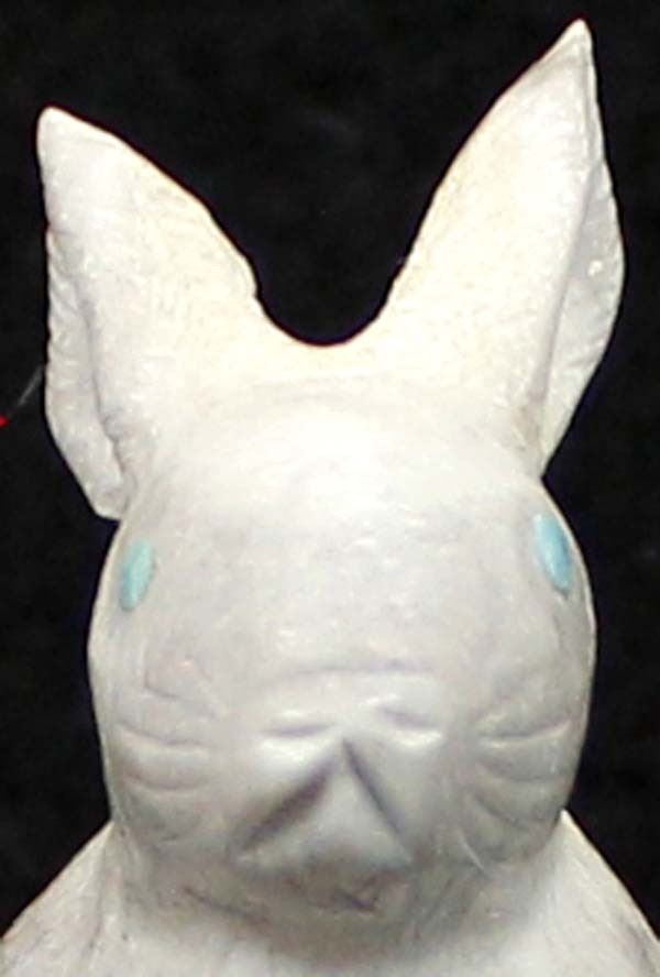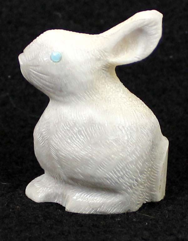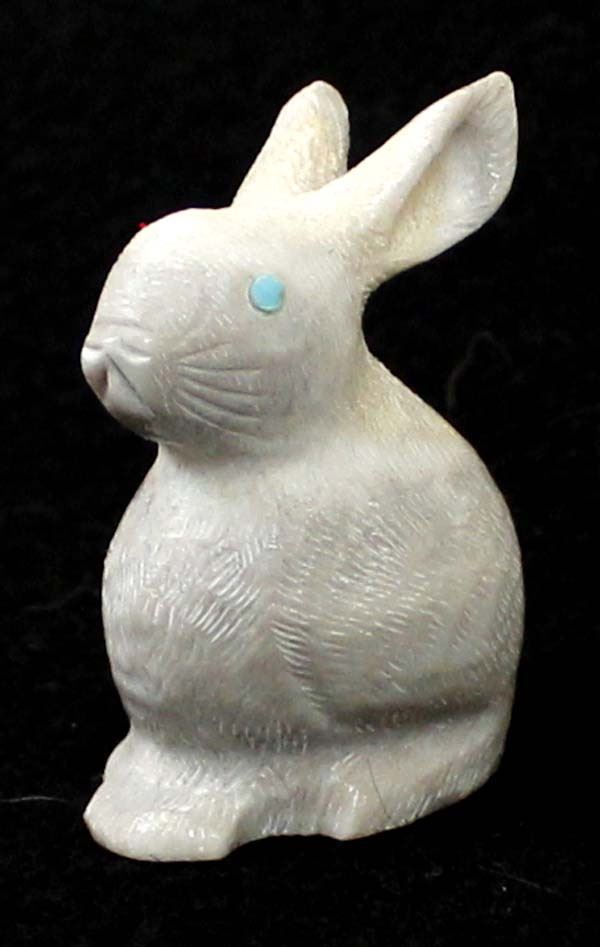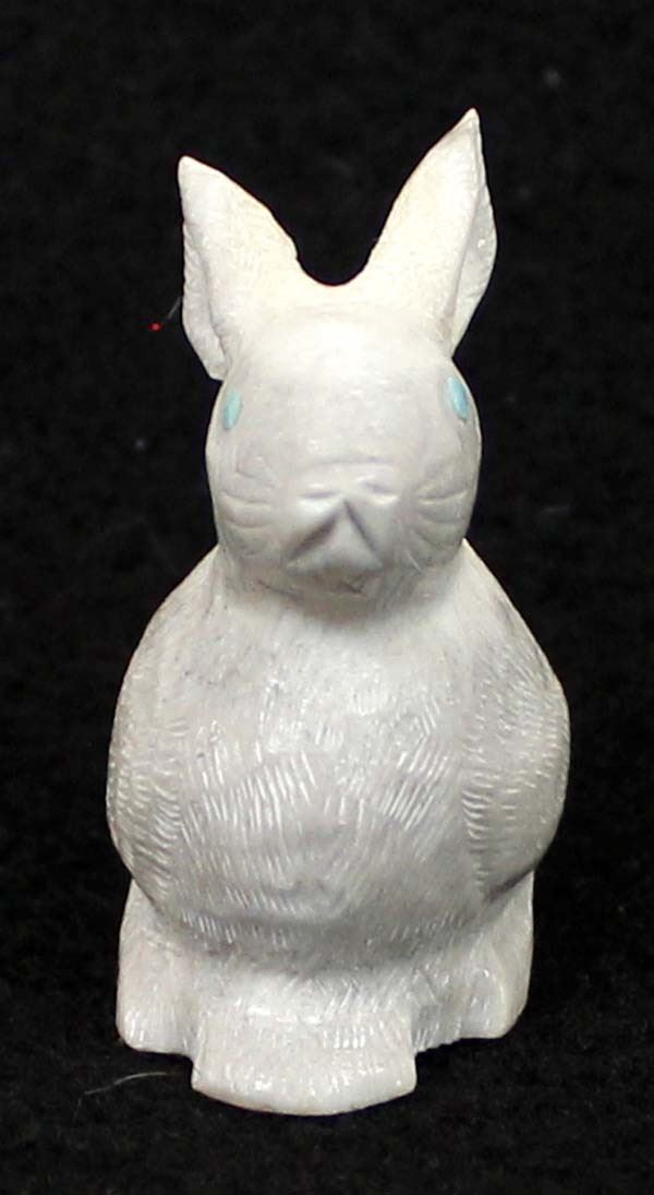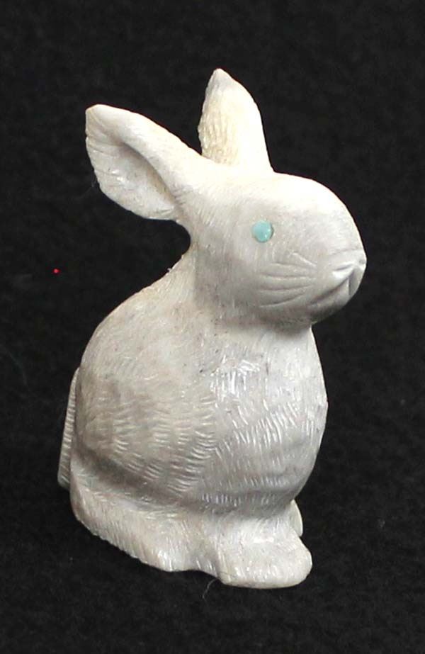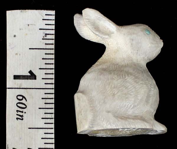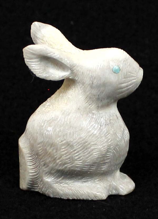 Native American Zuni Antler Rabbit Fetish by Willard Laate, measures 1.75'' x 1'' x .75'' and has artist's initials on the bottom, turquoise eyes