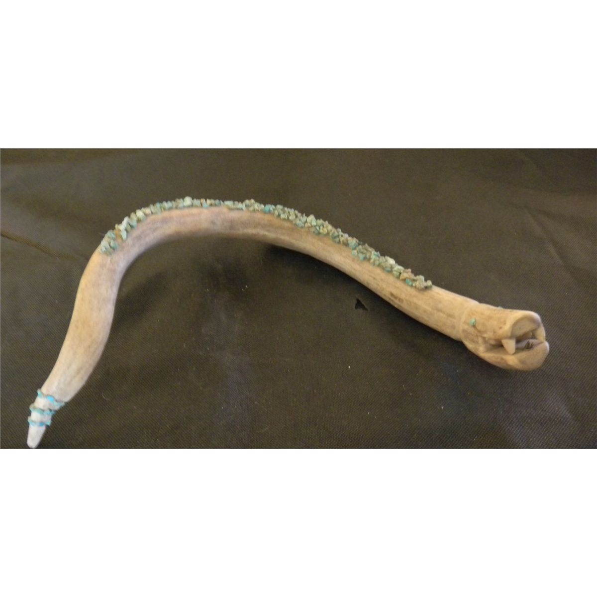 Zuni antler fetish snake - with turquoise overlay - 12"x9"x1" Shipping $10.50