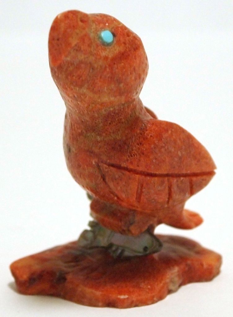 Zuni Apple Coral & Turquoise Parrot Fetish - Vaughn Kaskalla