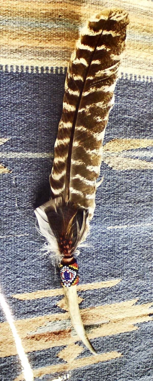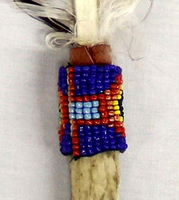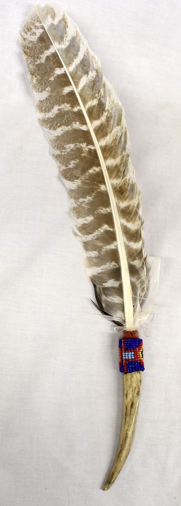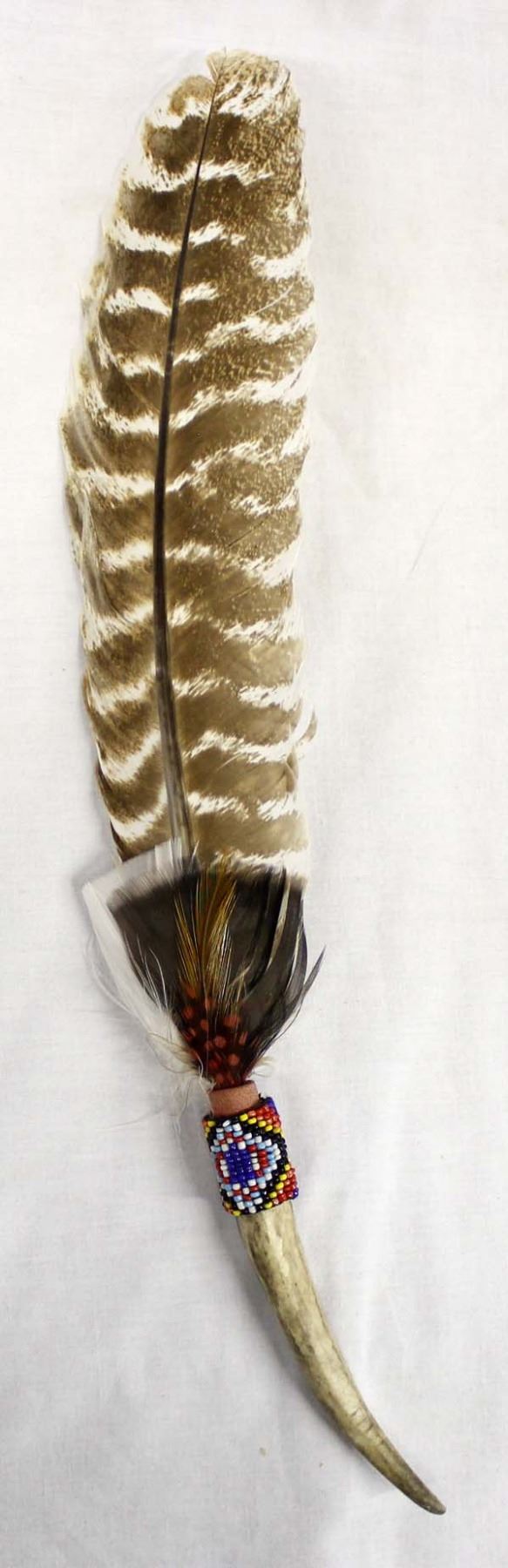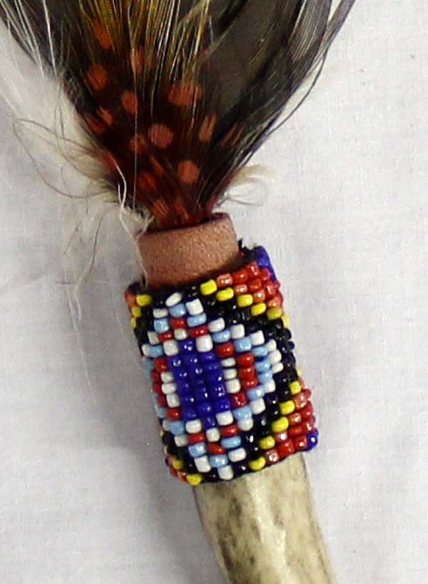 Native American Zuni Beaded Feather and Antler Dance Wand, measures 16''L end to end